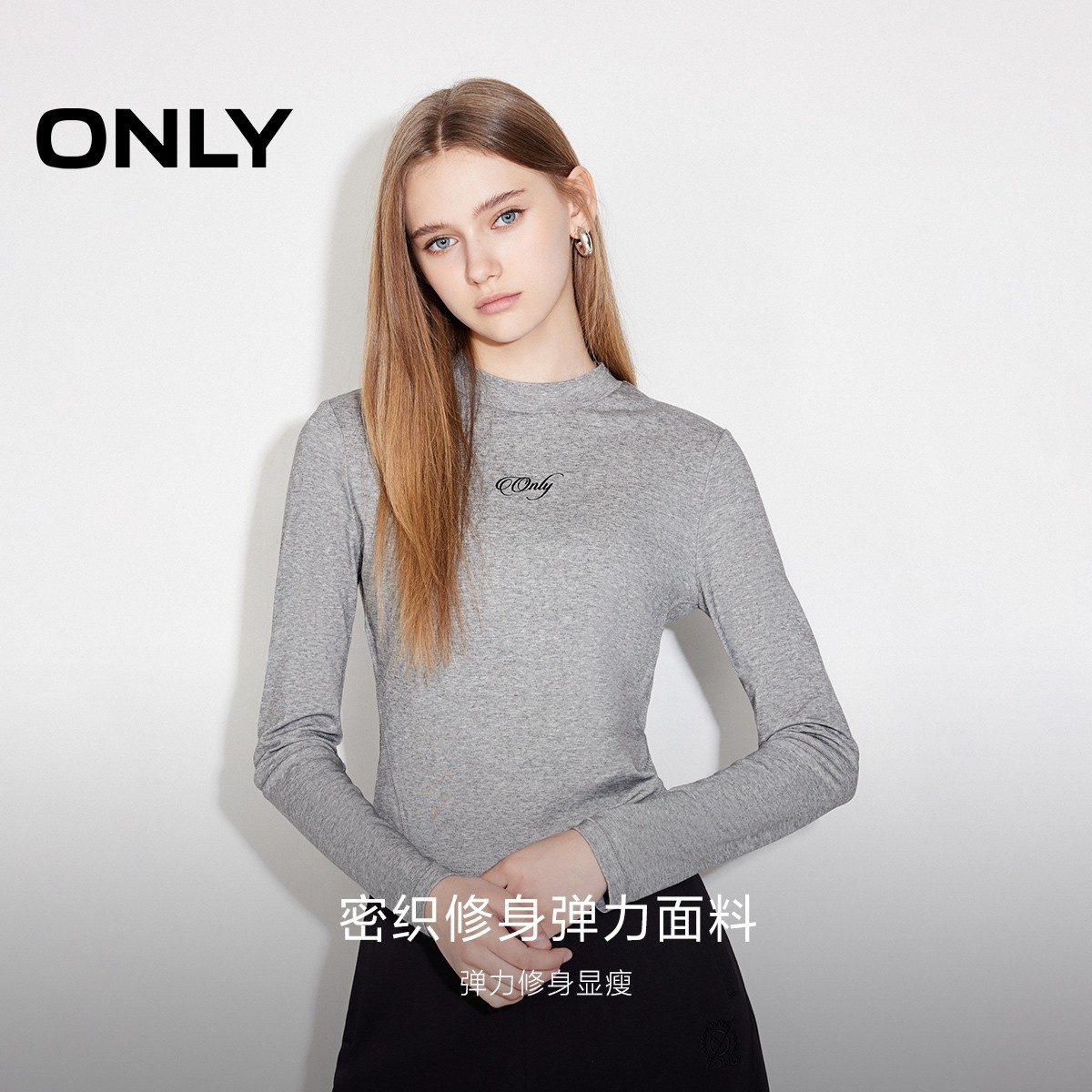 ONLY字母圆领长袖打底衫正肩T恤