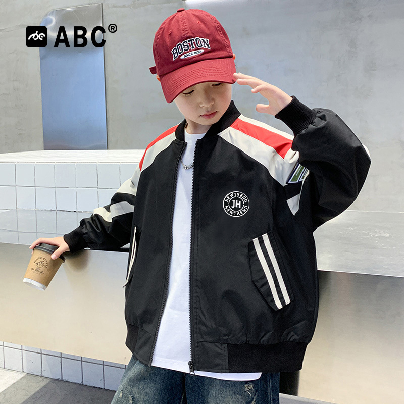 ABC男童春秋款夹克2025新款中大童拼色美式棒球服6-12岁男孩外套