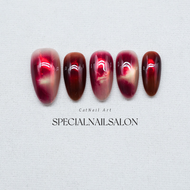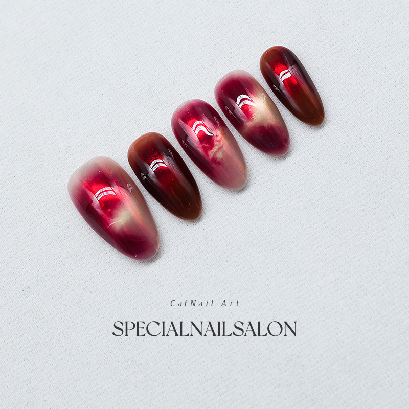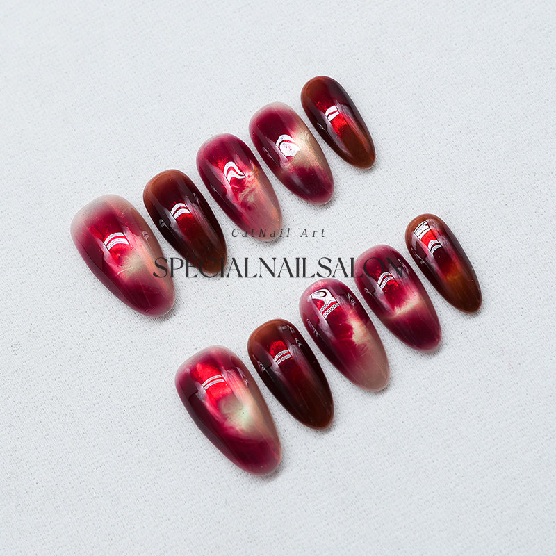 【樱桃果酱】纯手工穿戴甲2026新款晕染高级感渐变猫眼显白美甲片