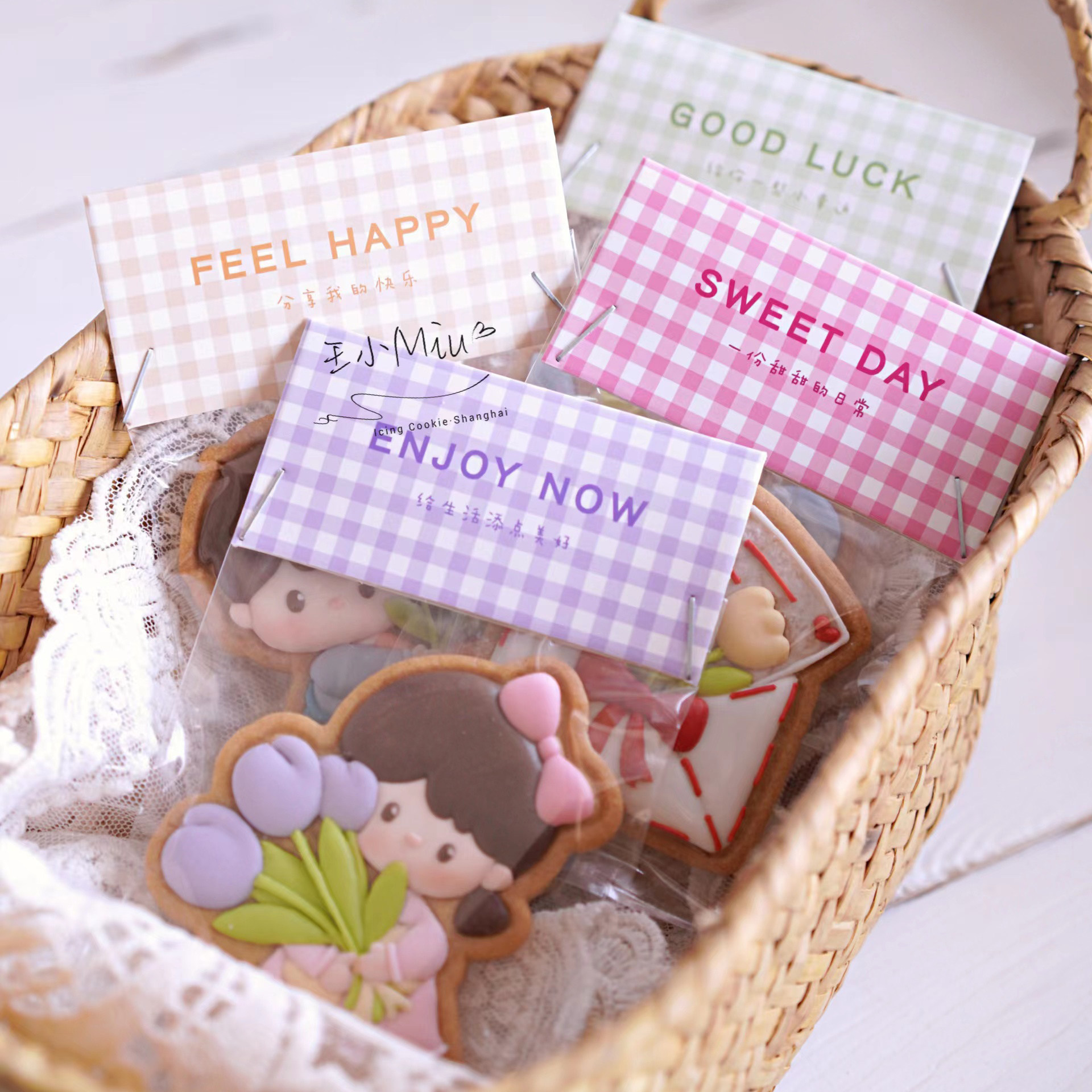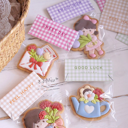 橡树果子日式格纹饼干页眉小清新曲奇装饰卡头百搭糖果包装卡纸