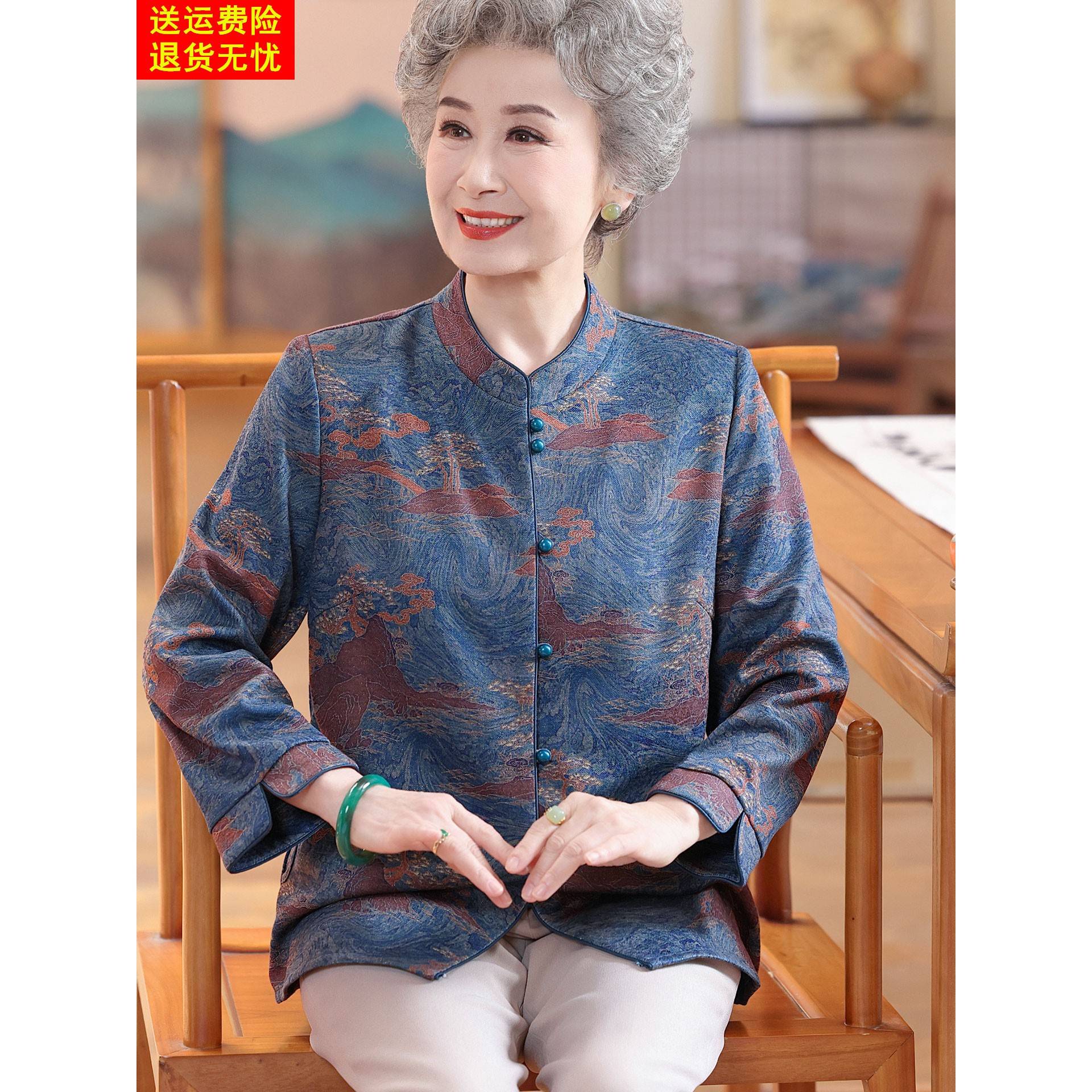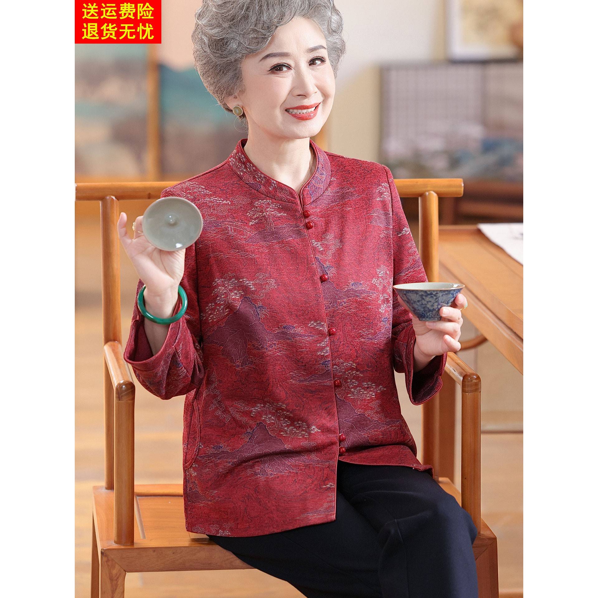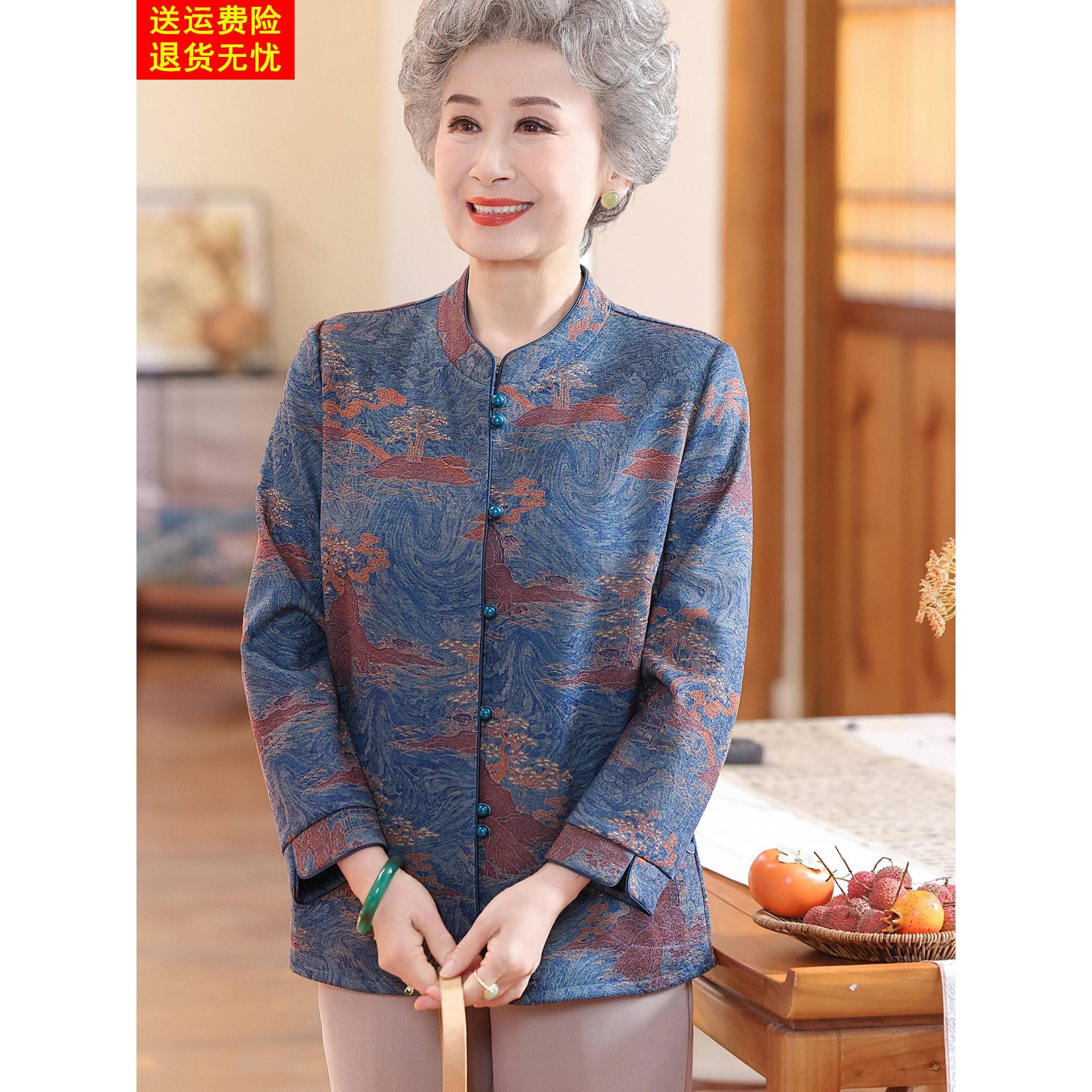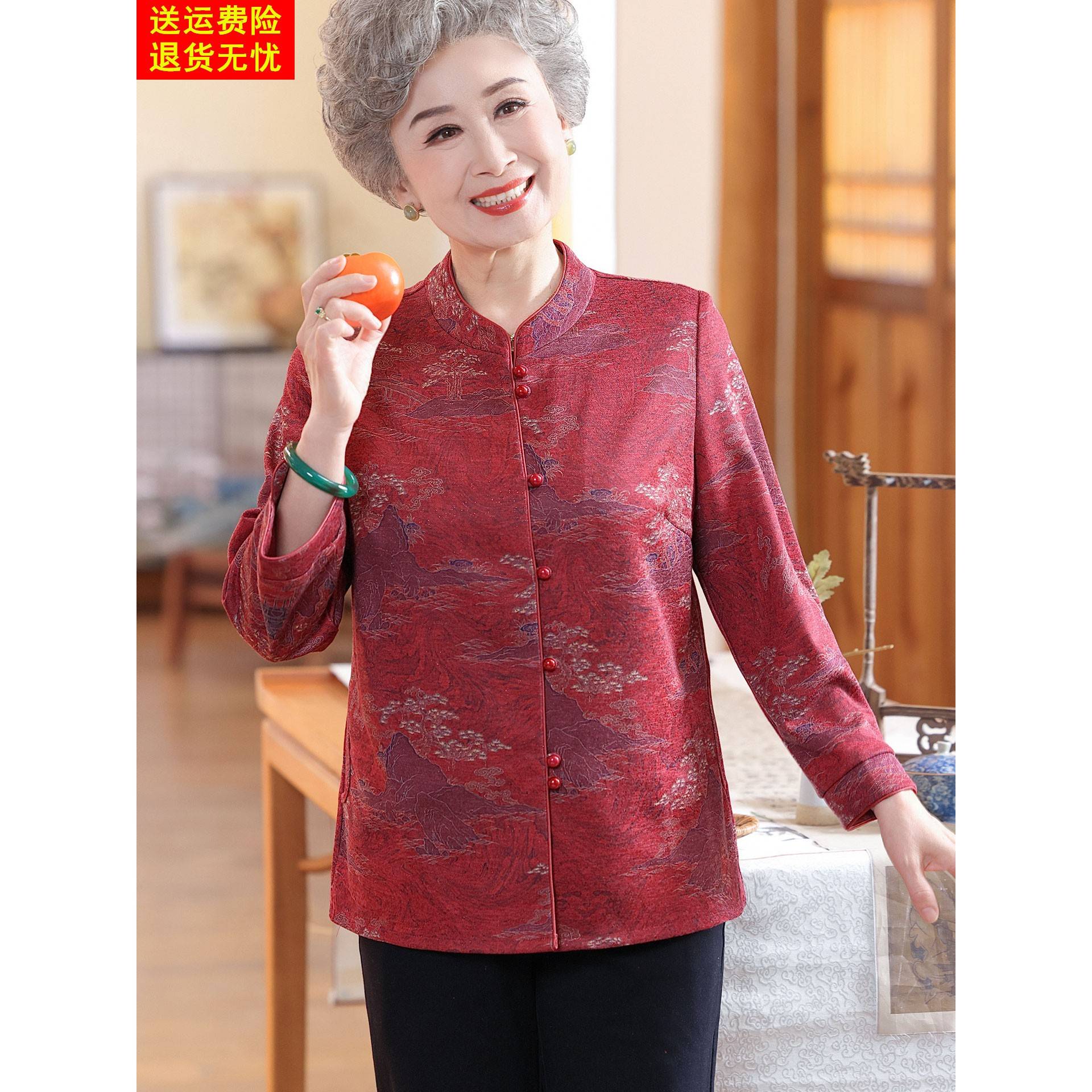 奶奶秋装衬衫老年人春秋装女长袖有口袋上衣70岁80老太太妈妈衬衣