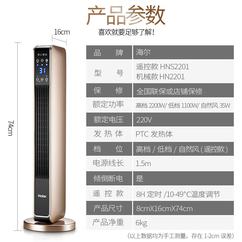 海尔石墨烯取暖器家用节能暖风机立式遥控大面积电暖气婴幼儿浴室