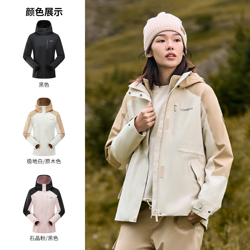 探路者女款冲锋衣秋冬户外三合一可拆卸抓绒内胆保暖防风登山外套