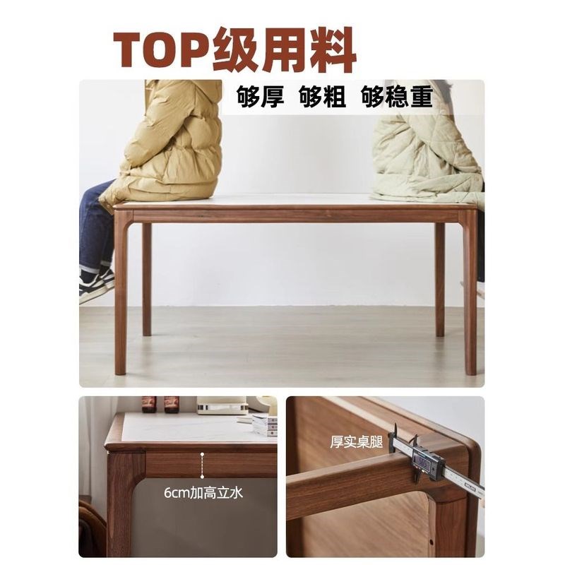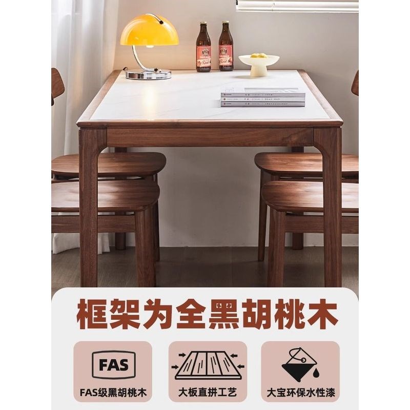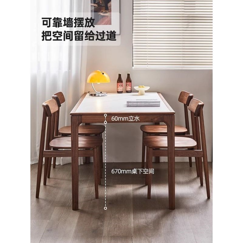 实木餐桌椅组合胡桃木岩板餐桌家用小户型长方形饭桌现代简约