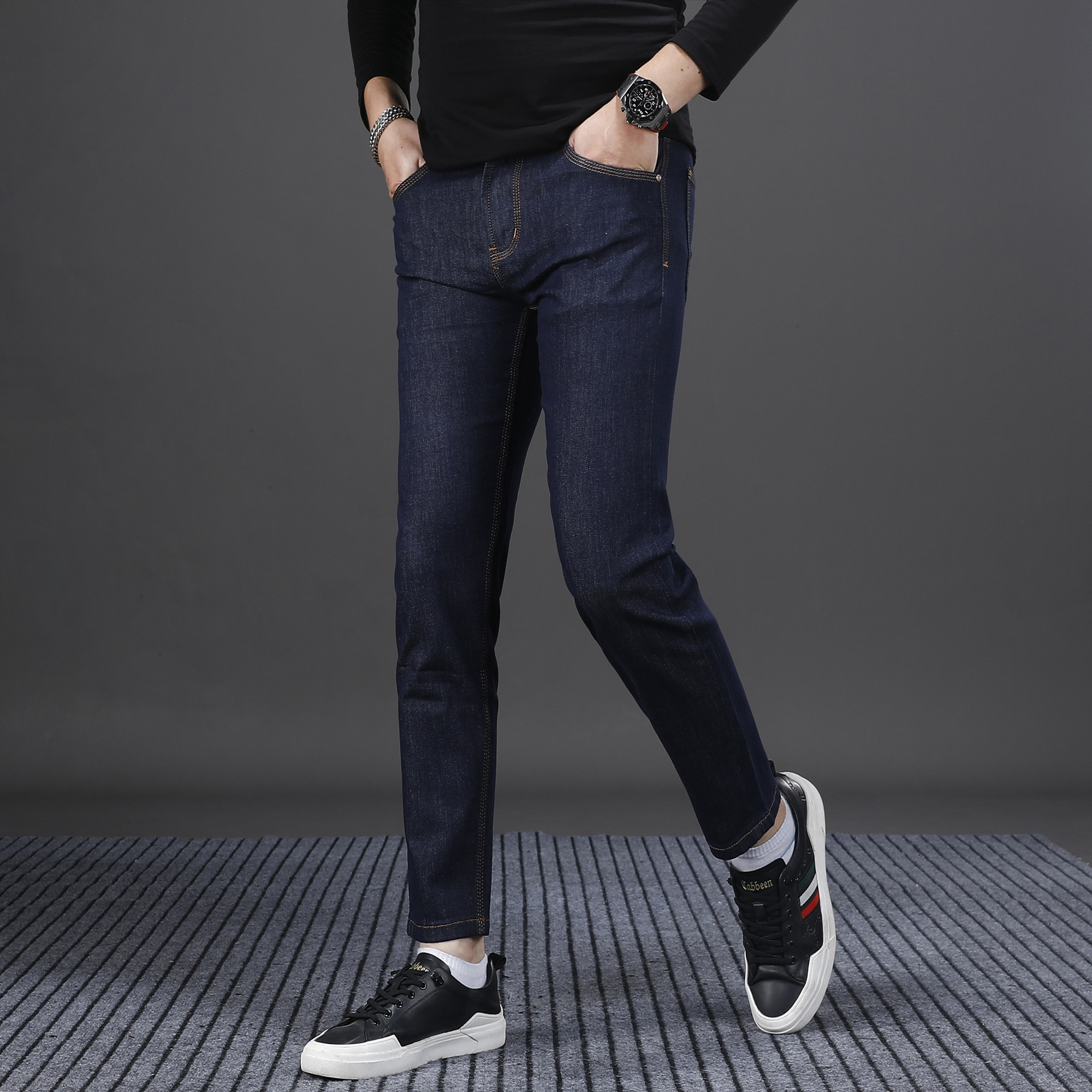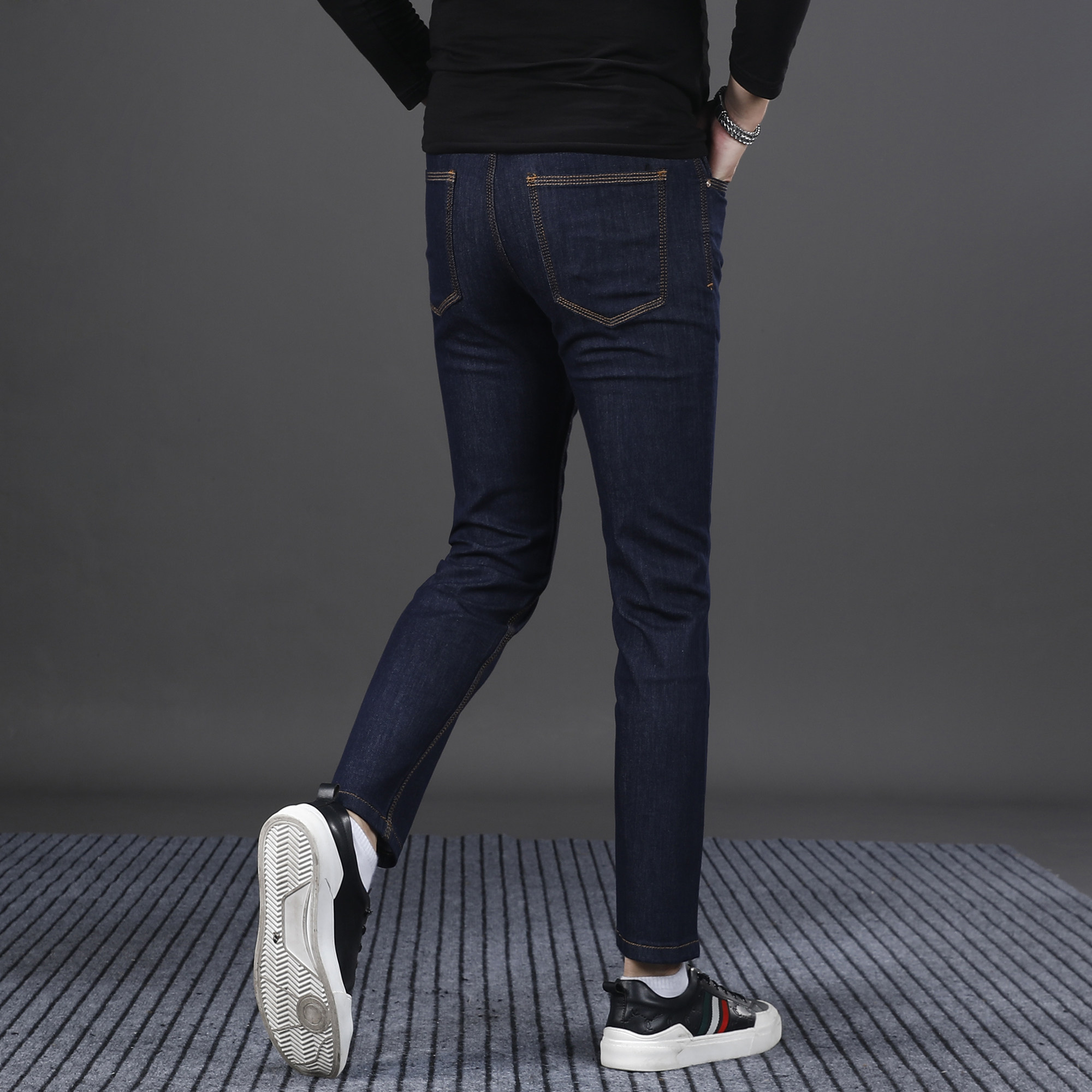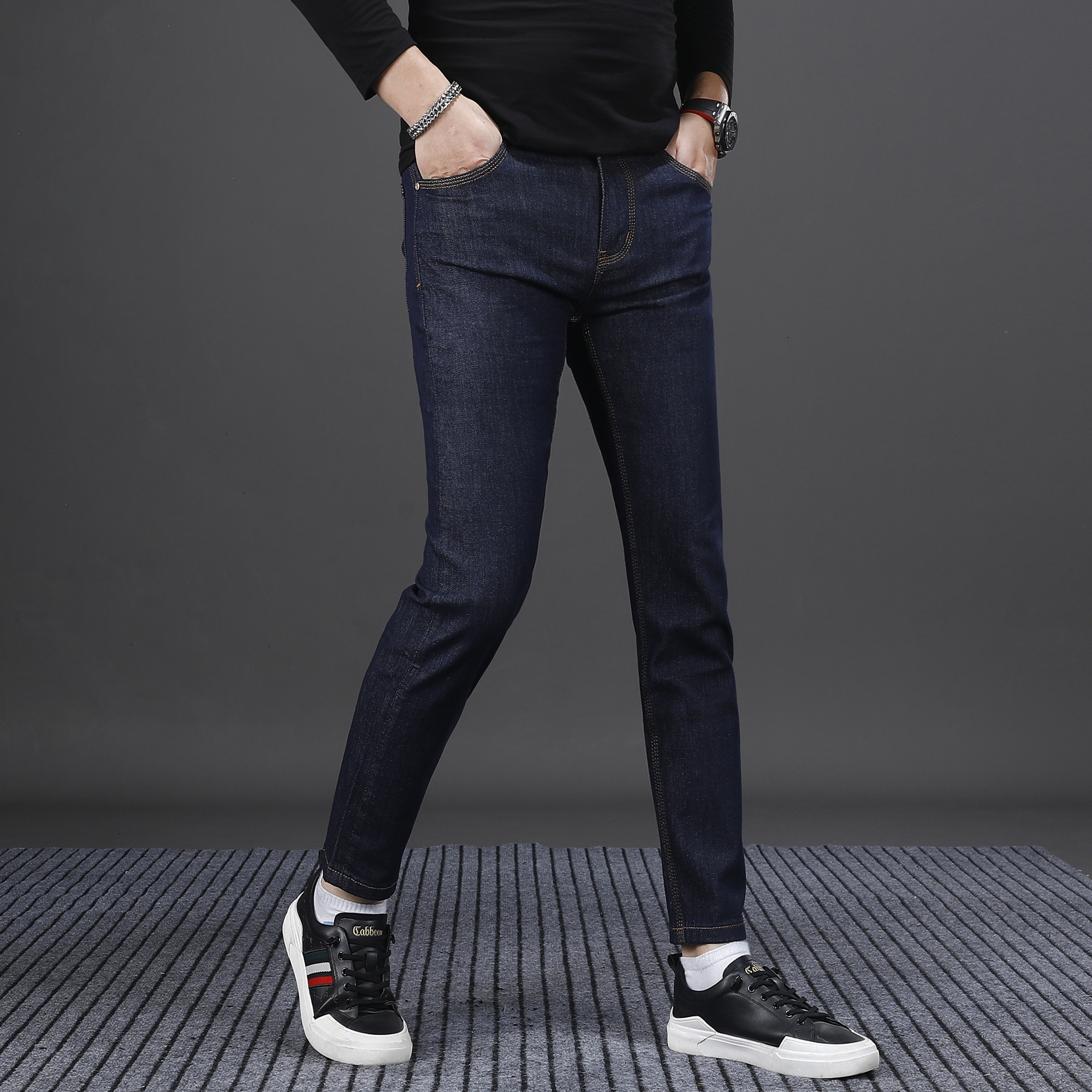 2025秋冬新款蓝色九分牛仔裤男修身小脚韩版潮流帅气男生裤子9分