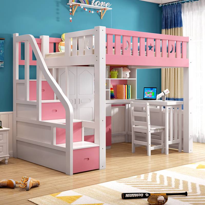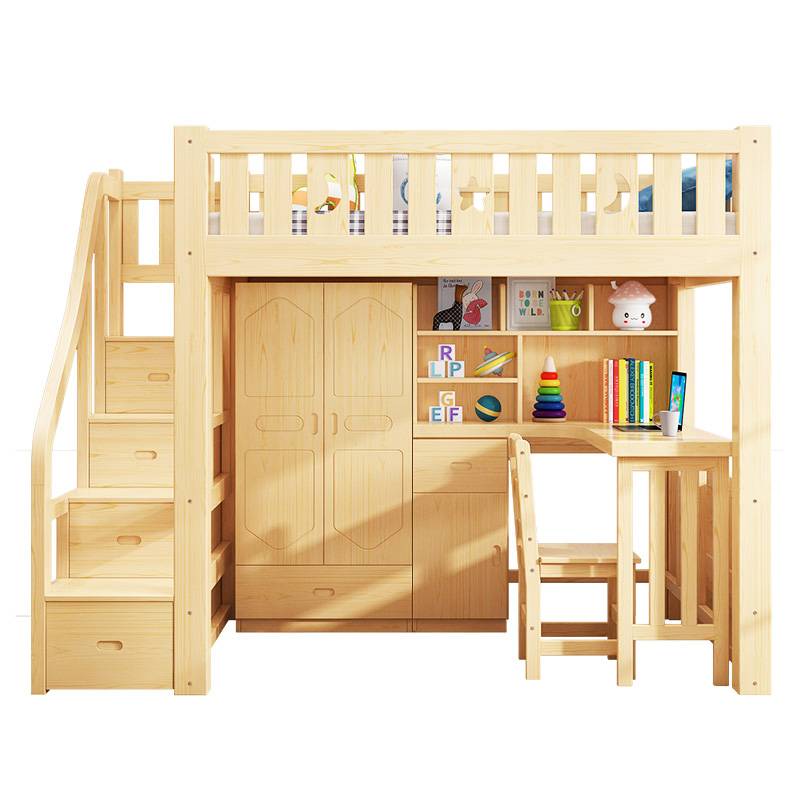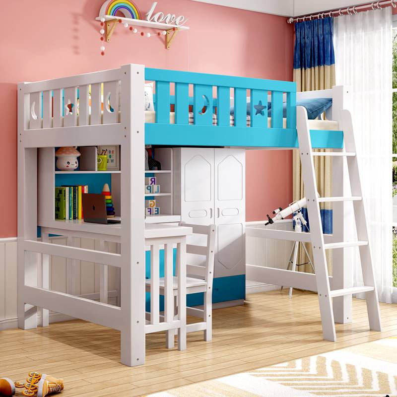 儿童多功能组合高低床带书桌双层上下铺高架床上床下桌衣柜一体床