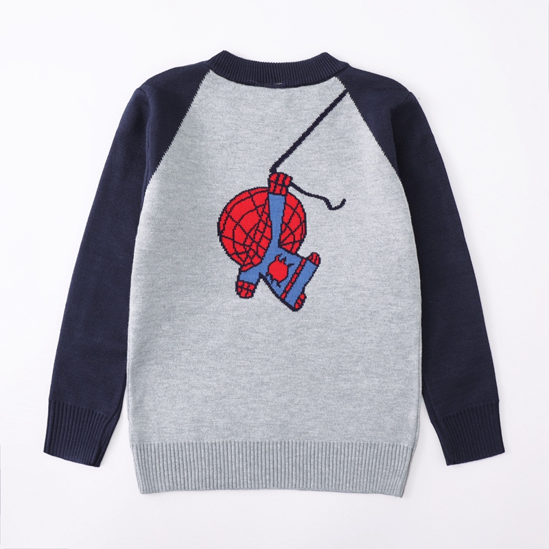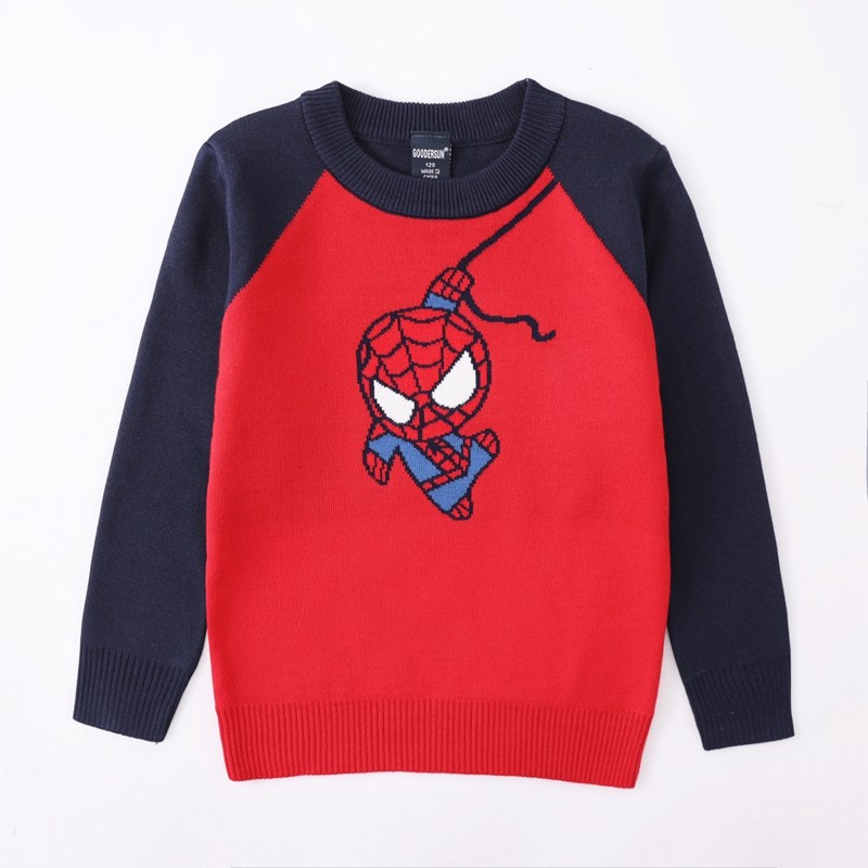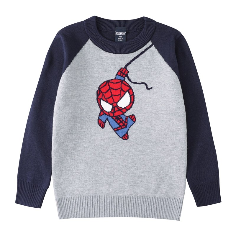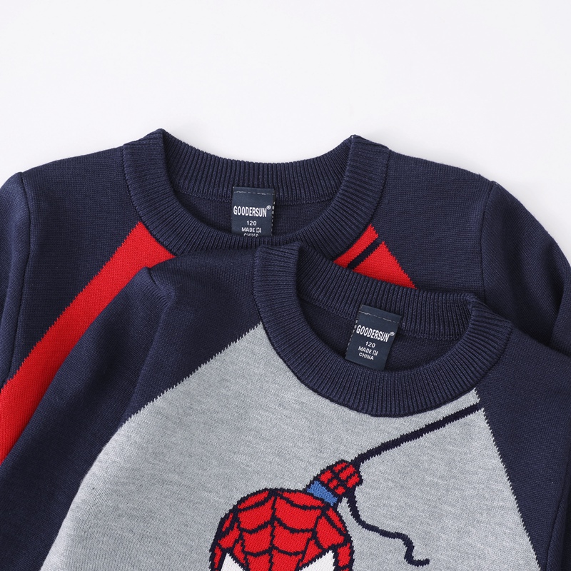 男童毛衣套头秋冬新款韩版双层保暖蜘蛛侠圆领纯棉宝宝加绒针织衫