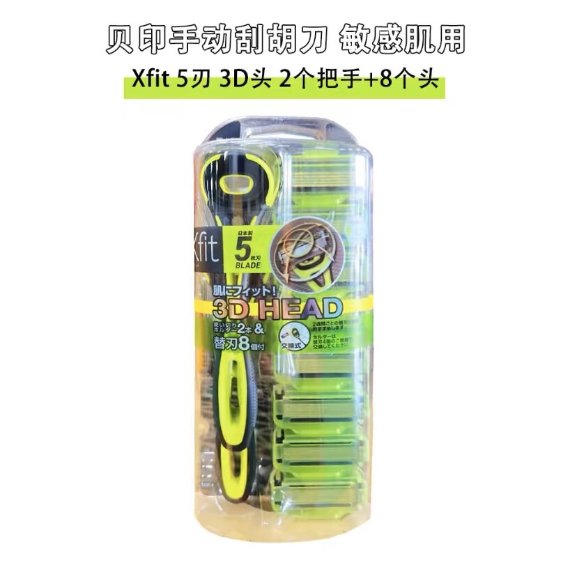 2把装8刀头日本kai贝印剃须刀刀片手动五层刀刃剃须刀敏感肌可用