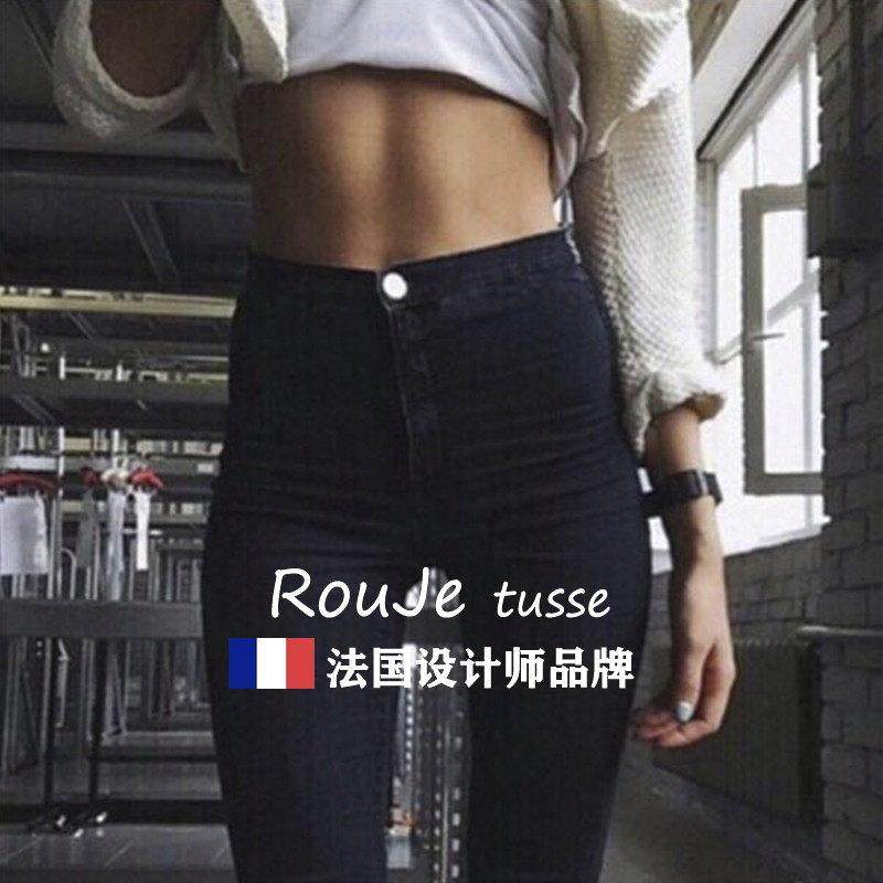 春夏新款欧美风超高腰高弹力牛仔裤女包臀紧身提臀小脚铅笔长裤潮