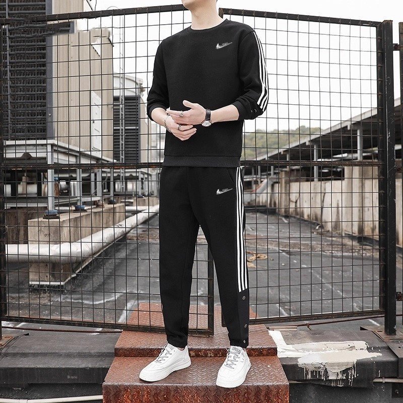 耐克顿休闲运动套装男秋冬季潮牌宽松纯棉圆领卫衣束脚卫裤两件套