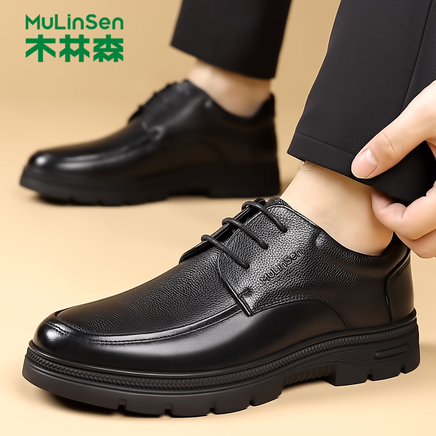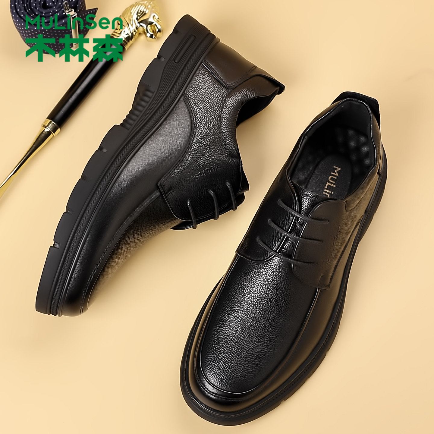木林森2025新款商务休闲皮鞋