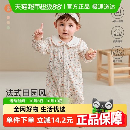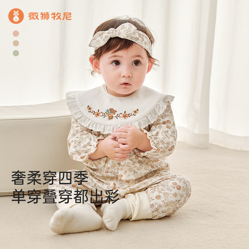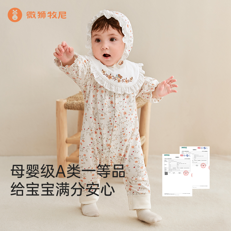 微狮牧尼春秋纯棉长袖女宝连体衣
