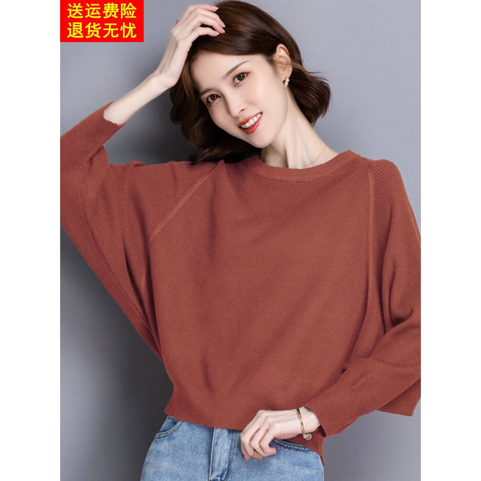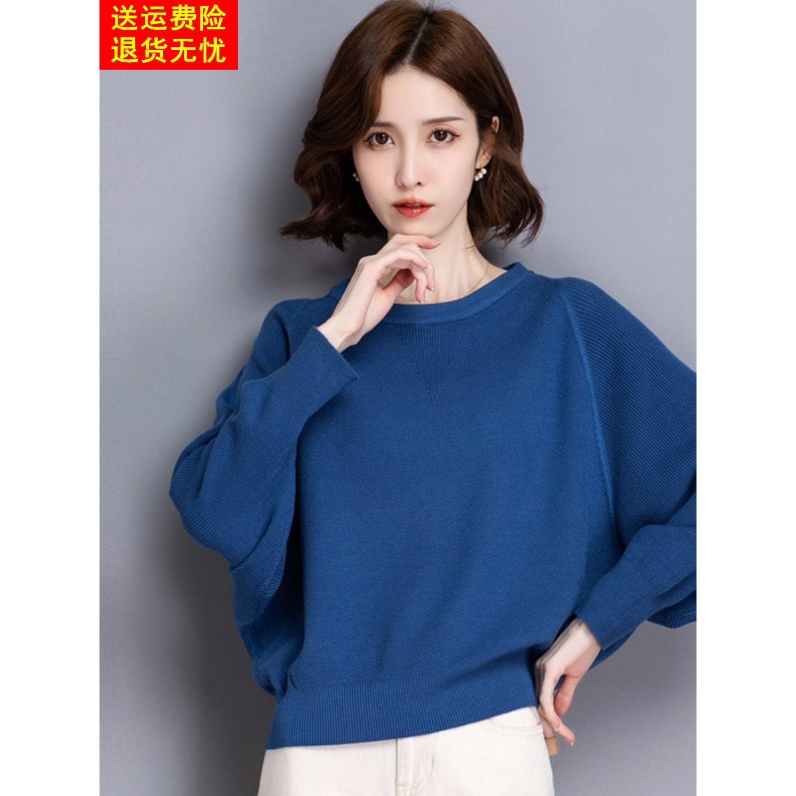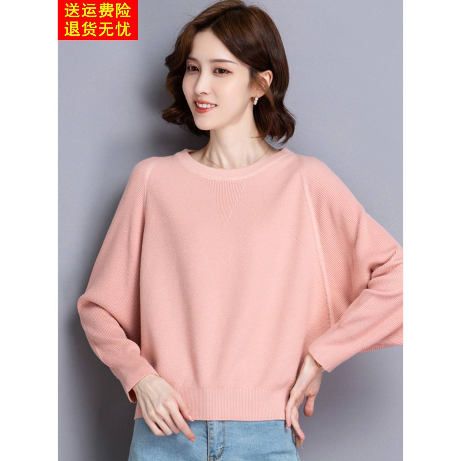 蝙蝠袖短款针织打底衫女春秋新款小个子时尚百搭上衣圆领薄毛衣