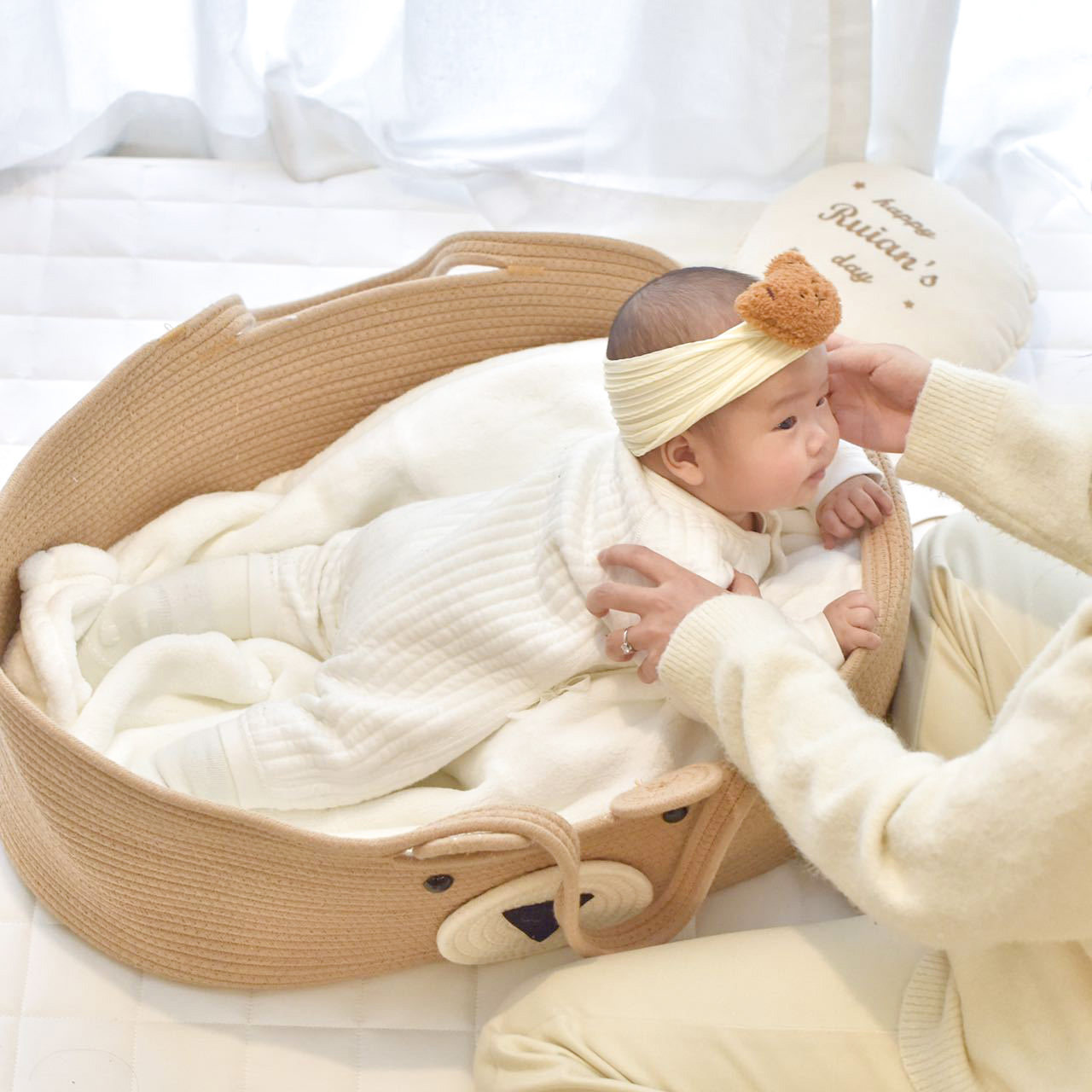 北欧外出车载婴儿睡篮 卡通小熊宝宝睡篮 便携式手提篮衣物存放