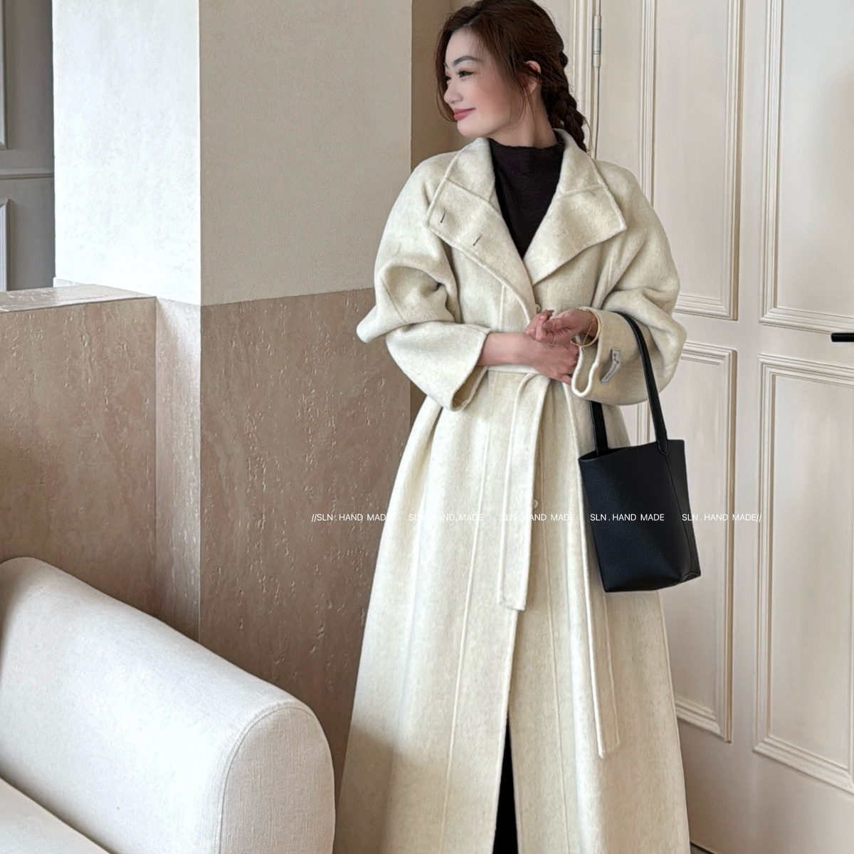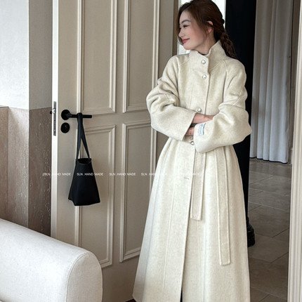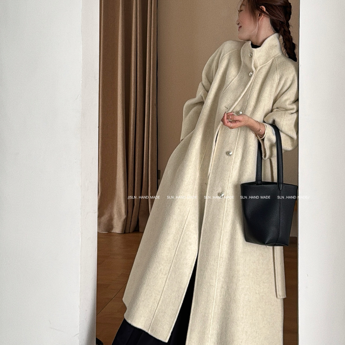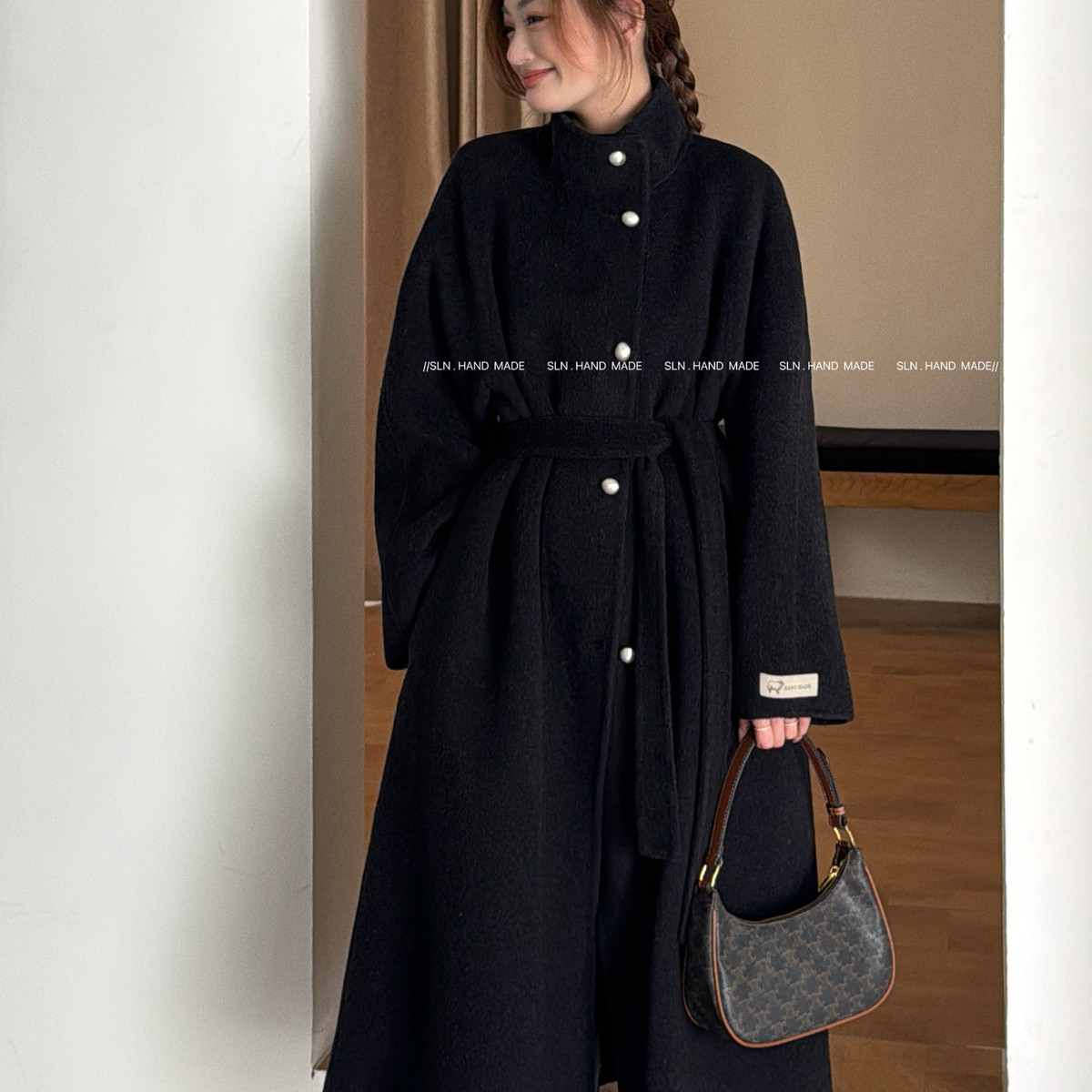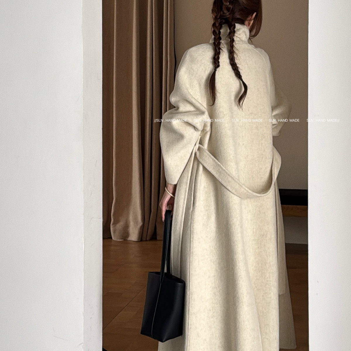 SLN-韩系立领定制金属扣长款羊毛外套(配腰带)(含100羊毛)AL306
