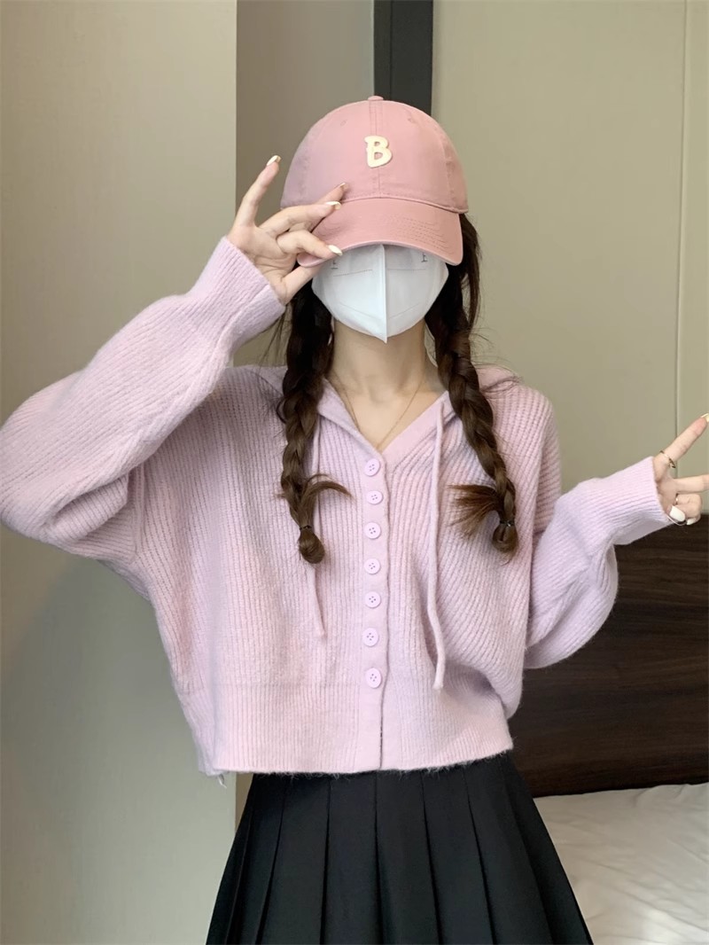 连帽毛衣针织衫外套外搭开衫女秋冬季2025新款慵懒风短款内搭上衣