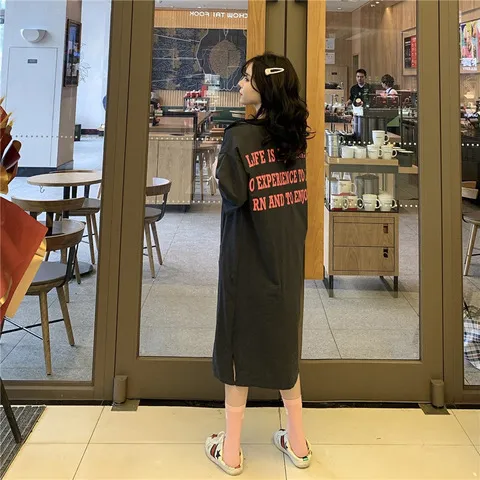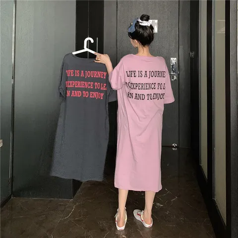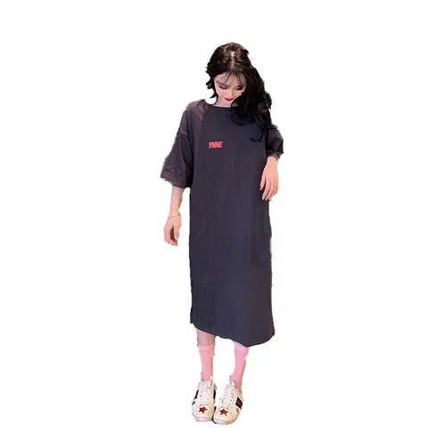 现货印花孕妇连衣裙韩版女装T恤休闲棉质孕妇装长款夏装裙子短袖