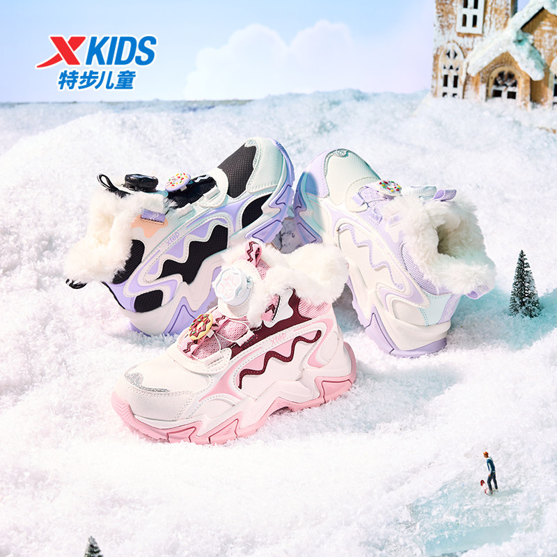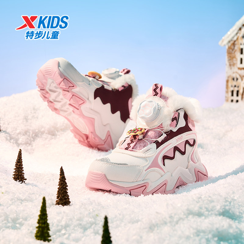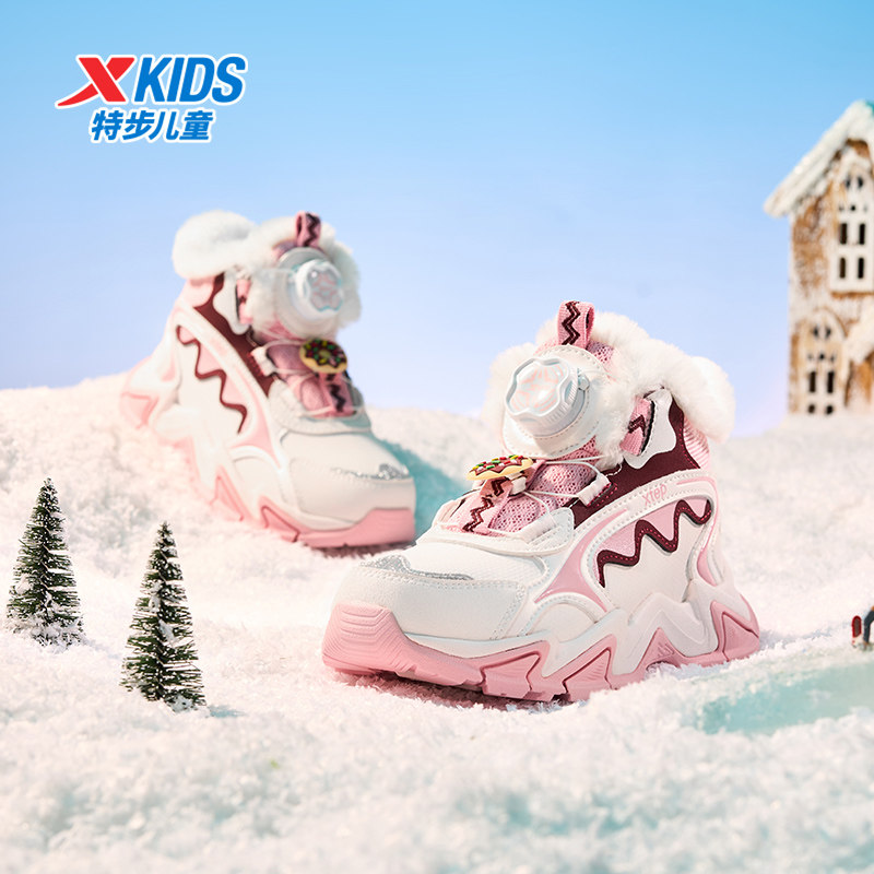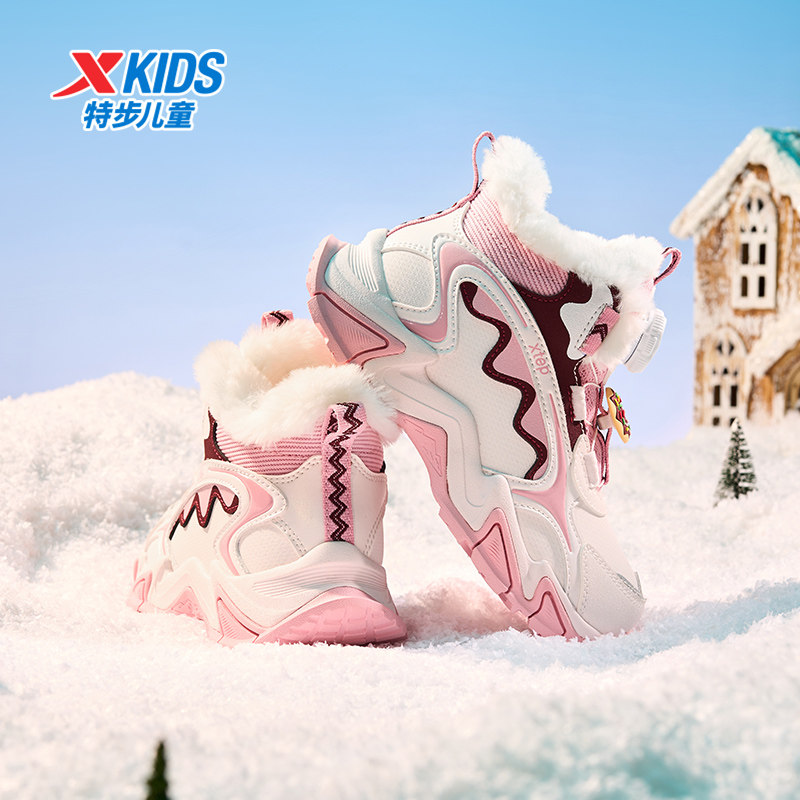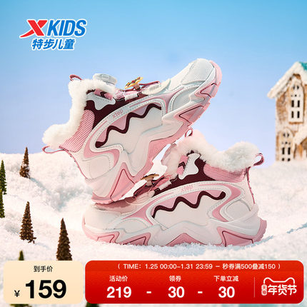特步童鞋秋冬新款幼小童保暖加绒高帮棉鞋儿童运动防滑耐磨运动鞋
