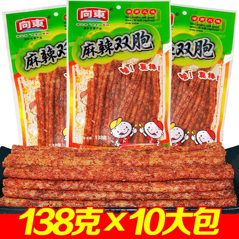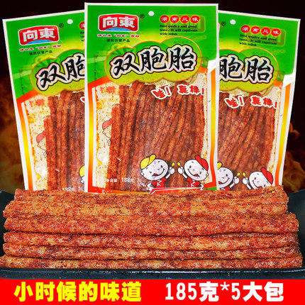 湖南岳阳特产麻辣零食 138克*5大包向东双胞胎麻辣条 80后怀旧f。