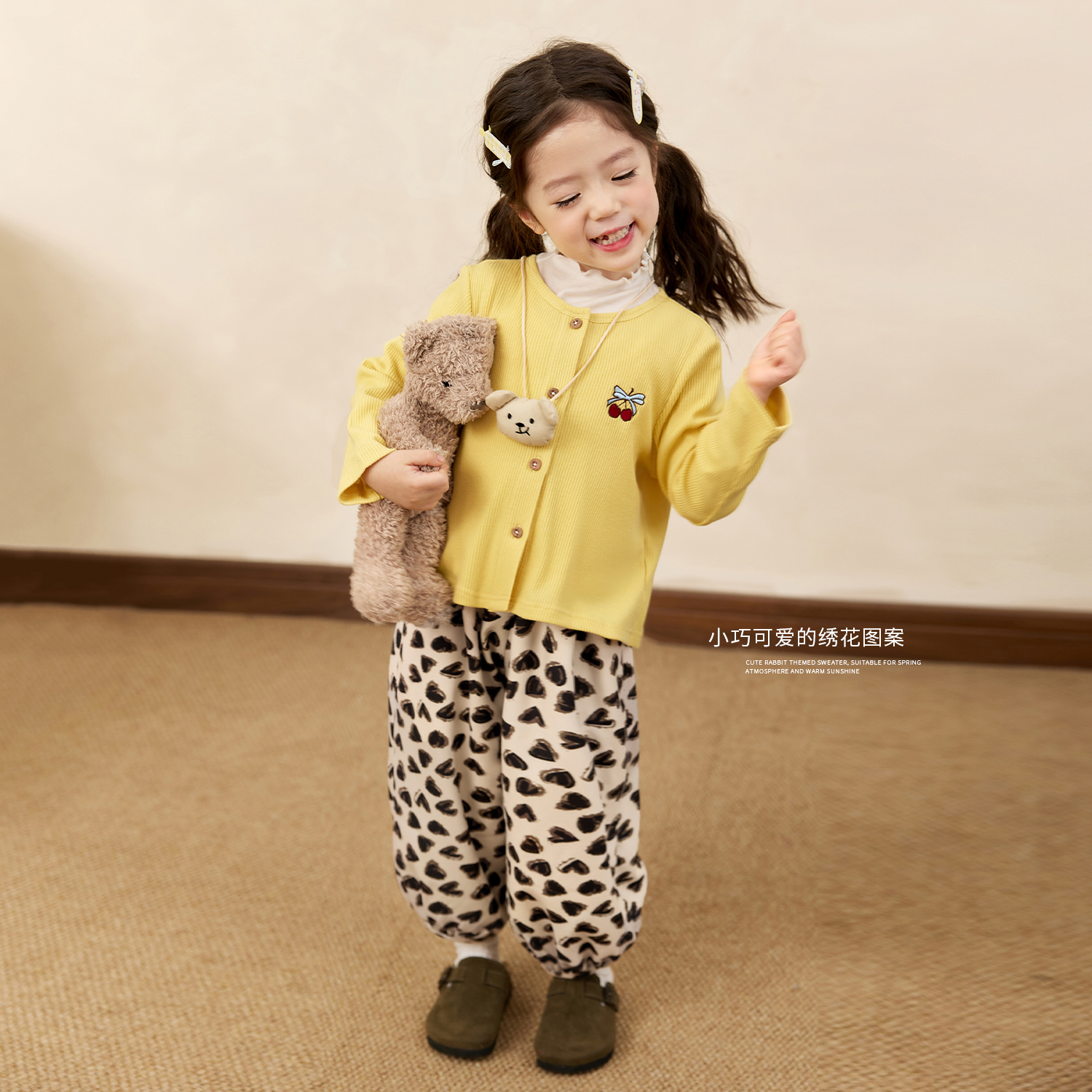 小O宝Okids童装 宝宝针织开衫女2025春季新款儿童陈大猪薄款外套