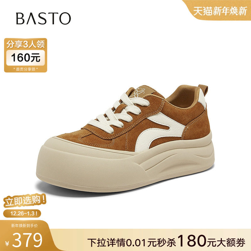 百思图2026春季商场新款真皮轻便厚底板鞋休闲运动鞋女鞋D3990AM6