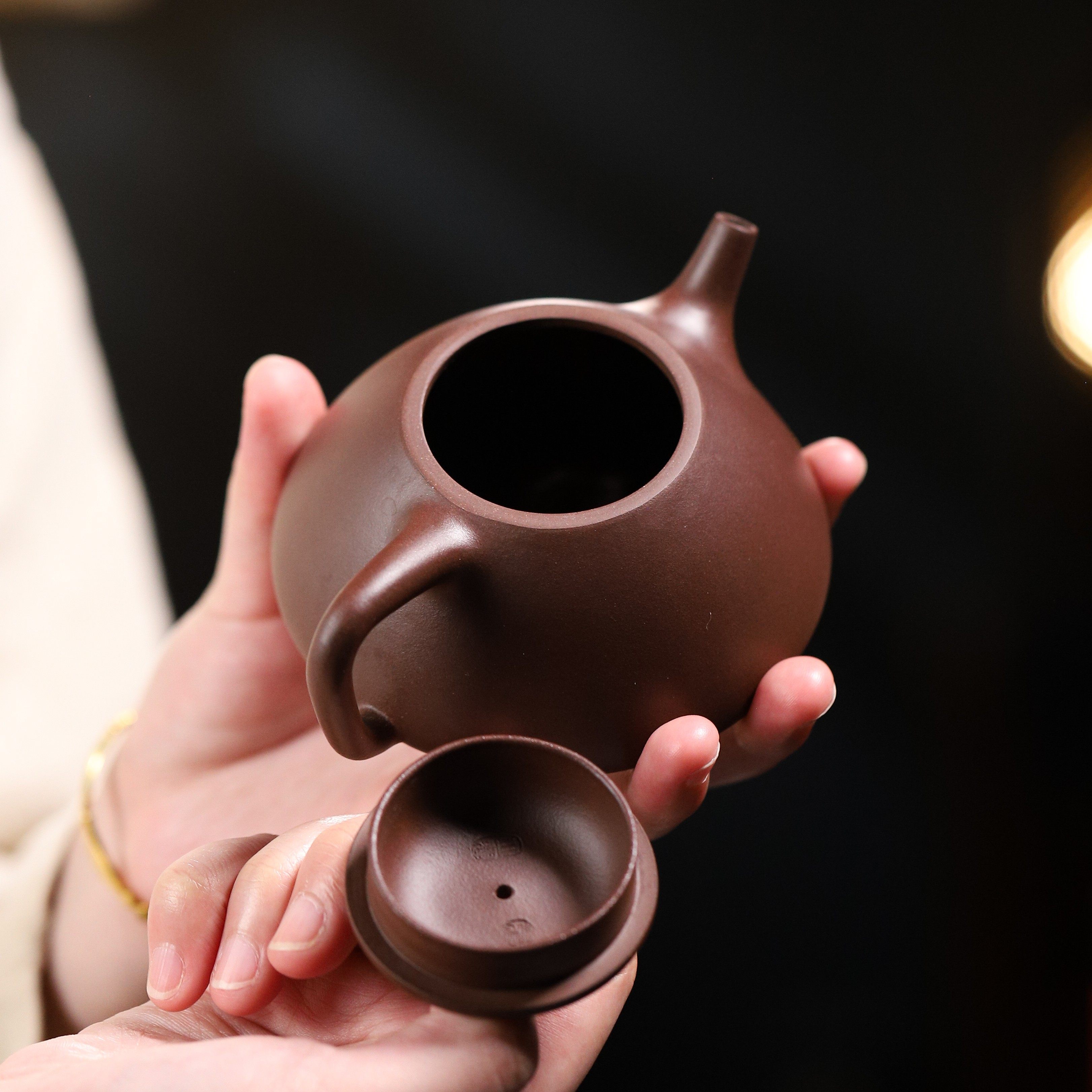 子冶石瓢壶宜兴正品紫砂壶全纯手工原矿老紫泥泡茶具网孔茶壶200c