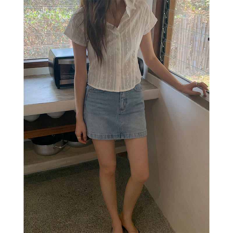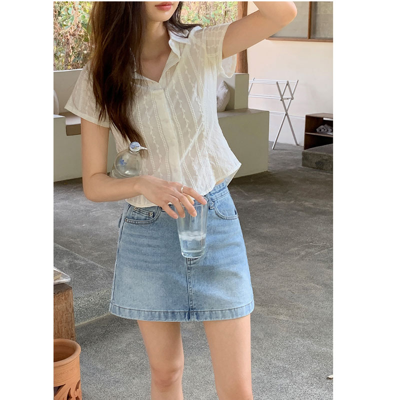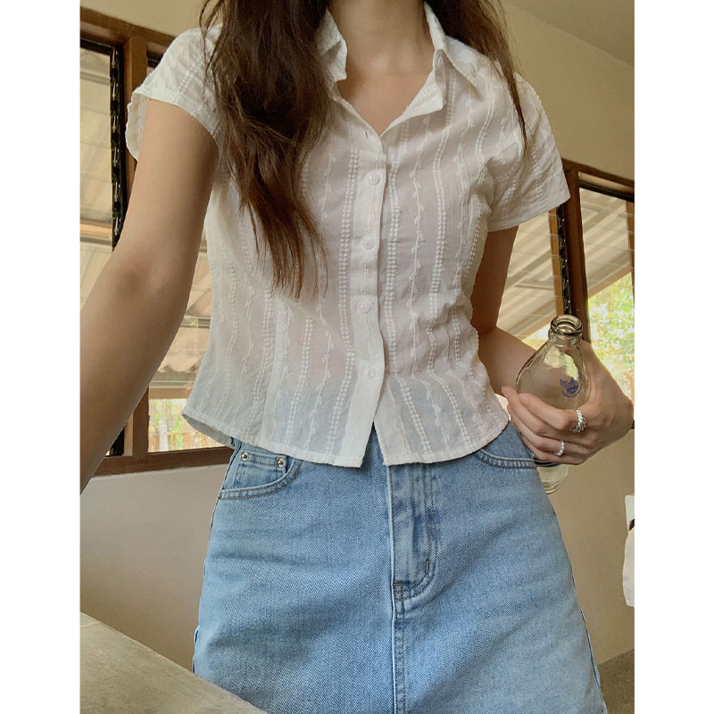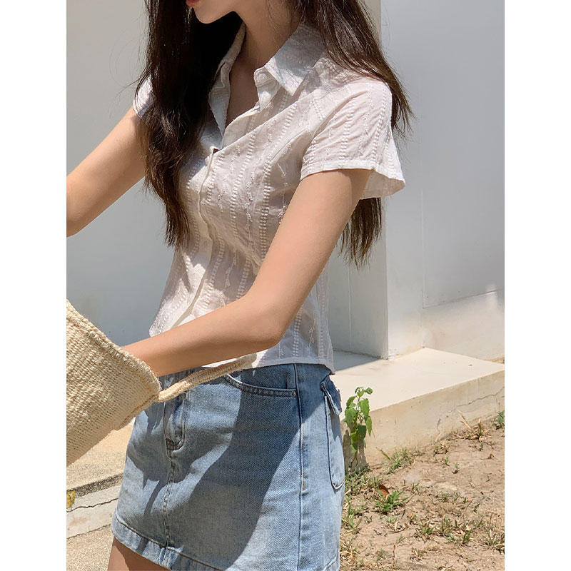 设计感小众洋气气质收腰显瘦短袖polo领短款提花别致衬衫上衣女夏