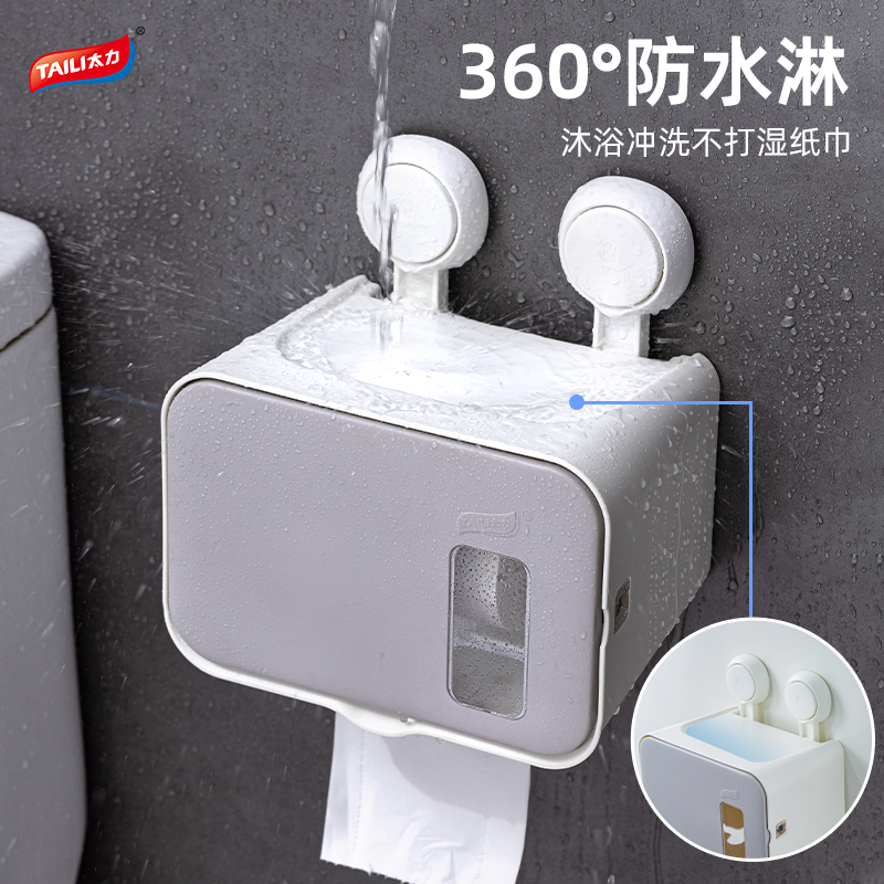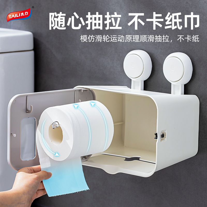 太力卫生间厕纸盒吸盘免打孔纸巾架手纸盒浴室洗手间纸巾盒卷纸架