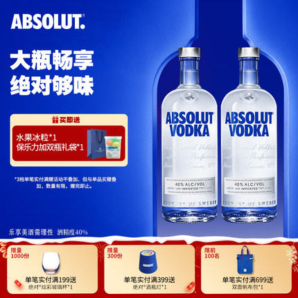 ABSOLUT绝对伏特加原味1000ml*2瑞典进口正品洋酒调酒必备官旗