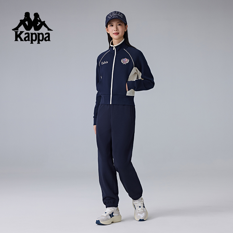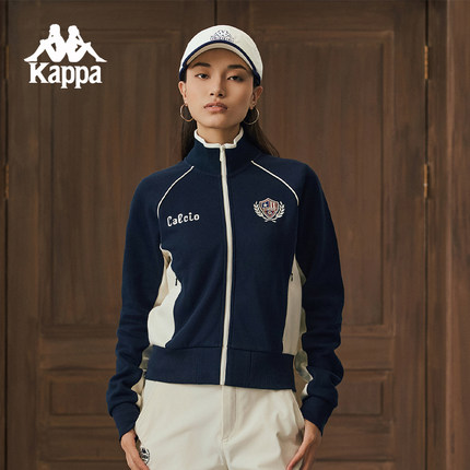 Kappa卡帕背靠背女款针织运动外套复古休闲开衫夹克撞色立领上衣