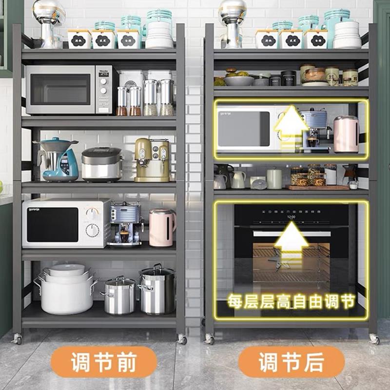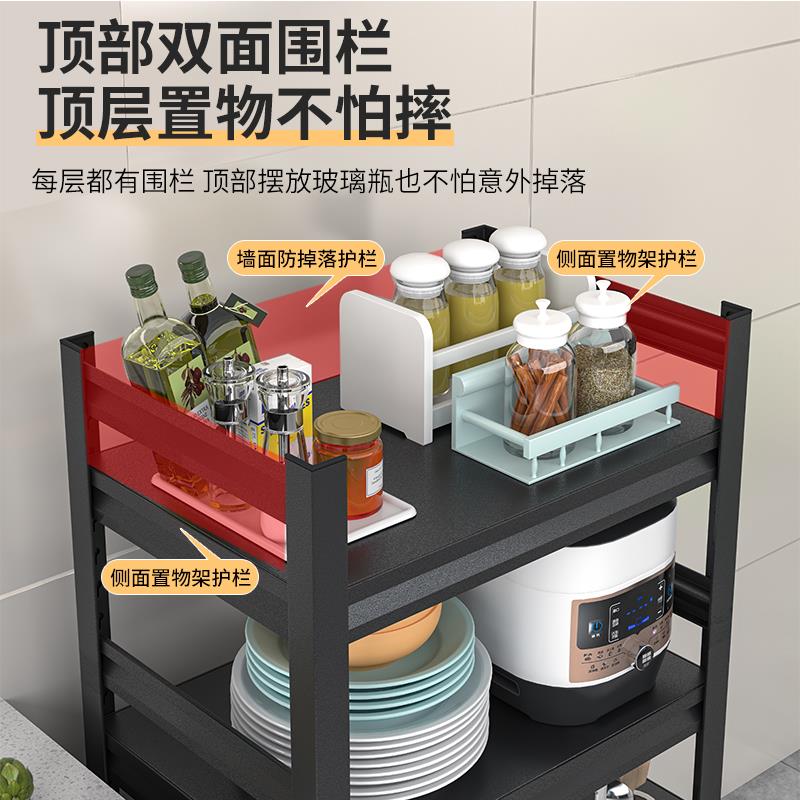 带围栏厨房置物架落地多层微波炉收纳架家用阳台杂物货架金属架子
