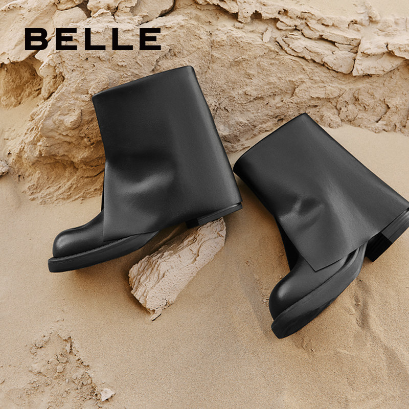 百丽裤管靴复古机车女靴冬季新款鞋子靴子商场中筒休闲靴A3A1DDZ3