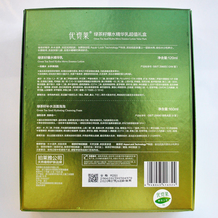 优资莱正品专柜 绿茶籽爆水精华乳洁面泡泡超值礼盒 深层保湿补水