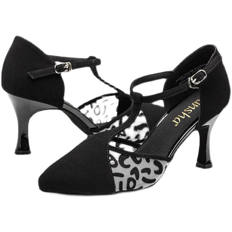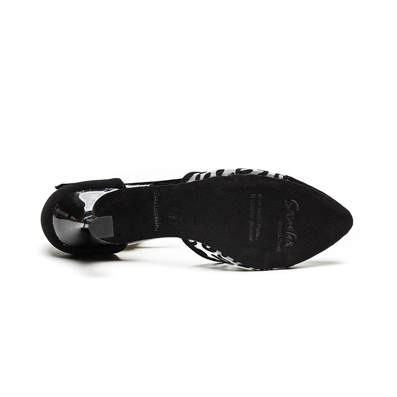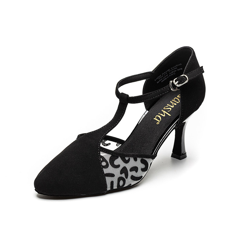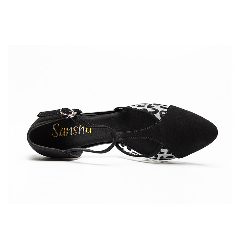 sansha 法国三沙拉丁舞鞋 反绒拼接豹纹网面高跟国标舞恰恰舞鞋