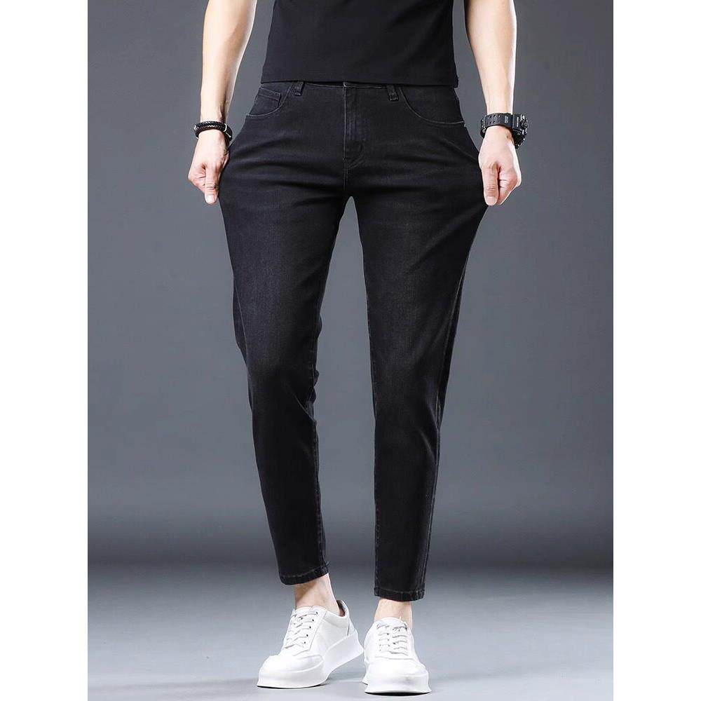 LEEKODY秋季黑灰色九分牛仔裤男修身小脚韩版潮流百搭弹力9分裤子