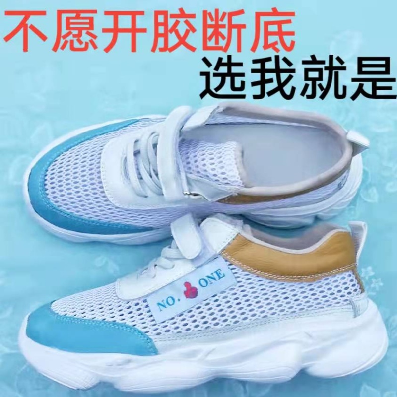 头层真牛皮夏季镂空透气休闲运动跑步轻便中小学生男女童白色凉鞋