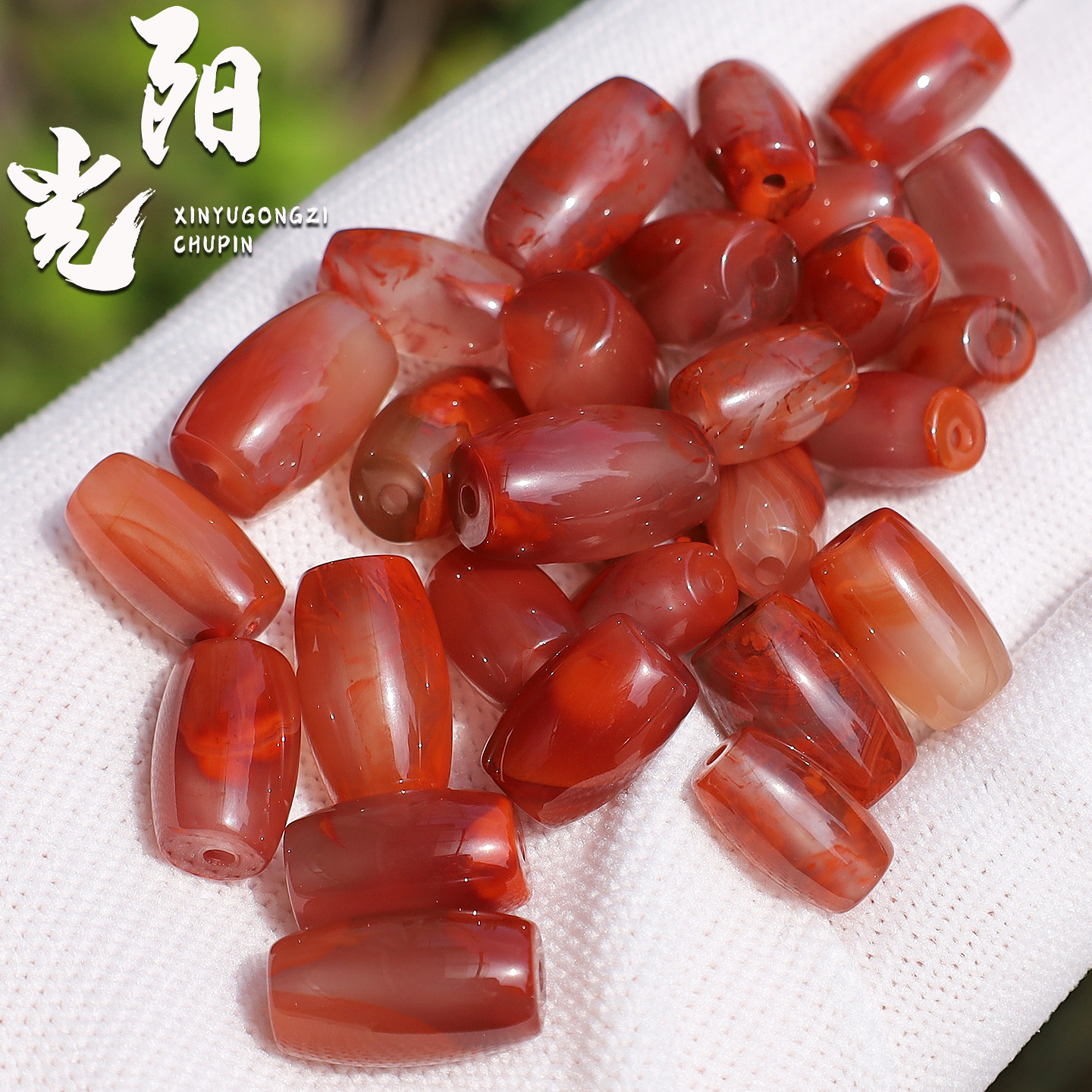 保真凉山南红玛瑙桶珠火焰纹冰飘红散珠隔珠顶珠手链手串DIY配饰