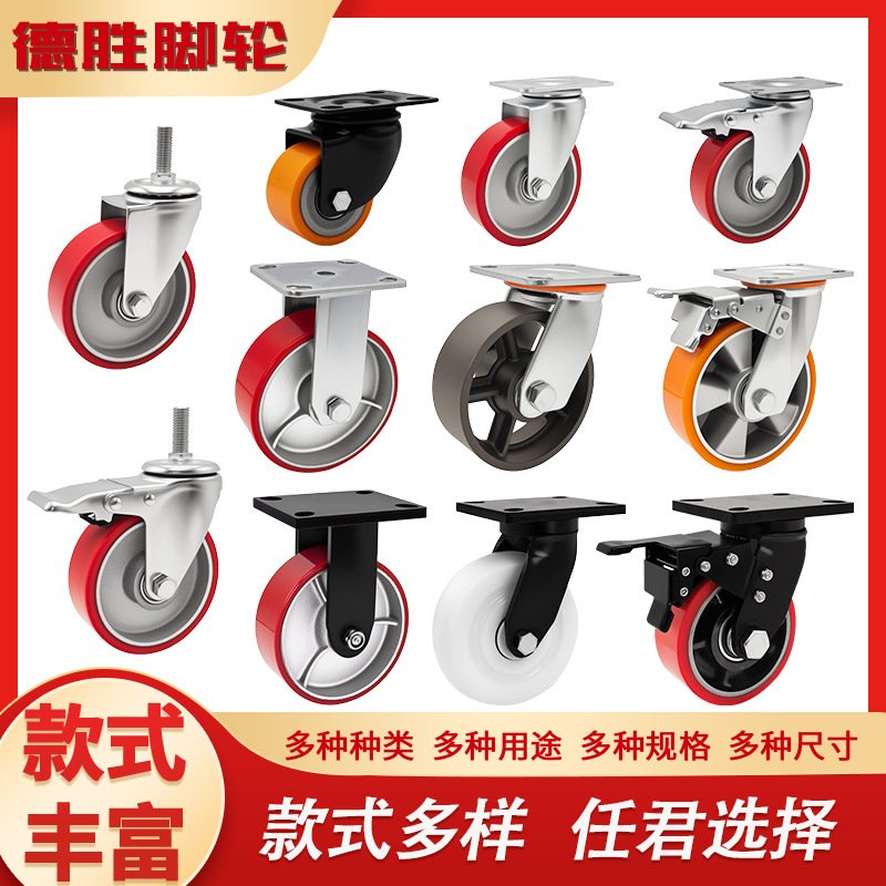 重型铁芯聚氨酯万向轮3/4寸5寸6寸8寸重型PU承重耐磨静音推车脚轮