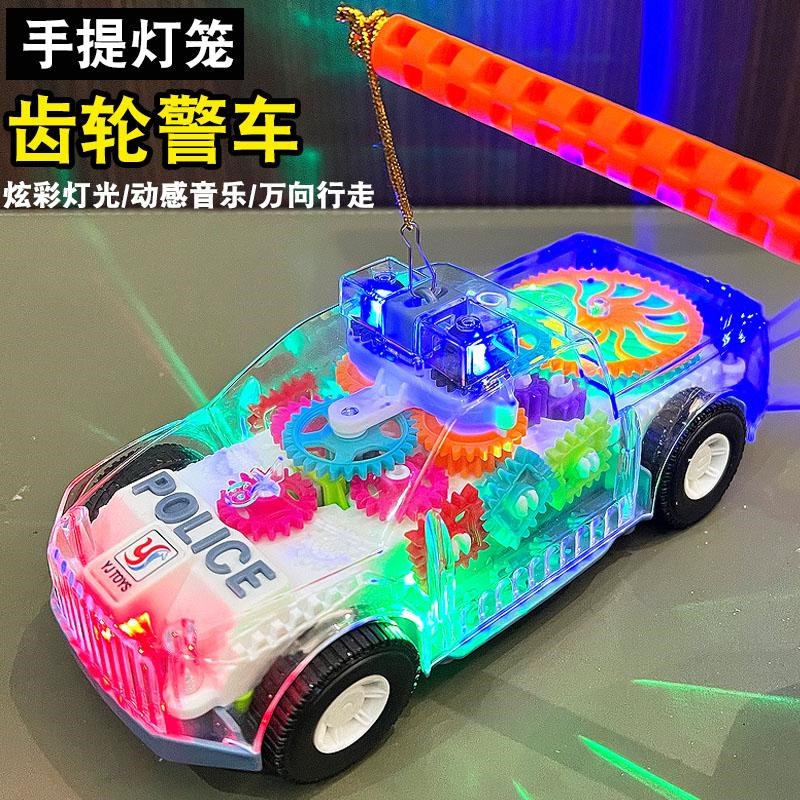 儿童电动手提灯笼齿轮警车发光花灯女男孩玩具汽车元宵节新年礼物
