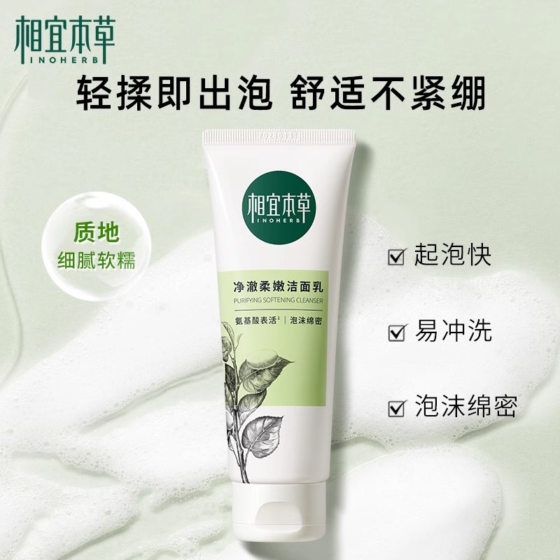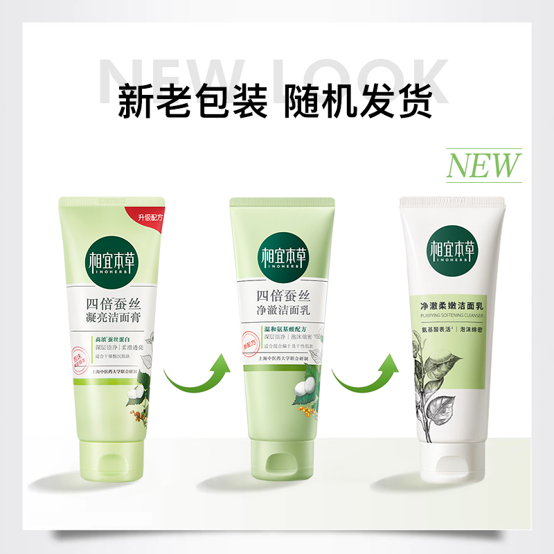 相宜本草四倍蚕丝净澈柔嫩洁面乳清洁氨基酸洗面奶男女正品