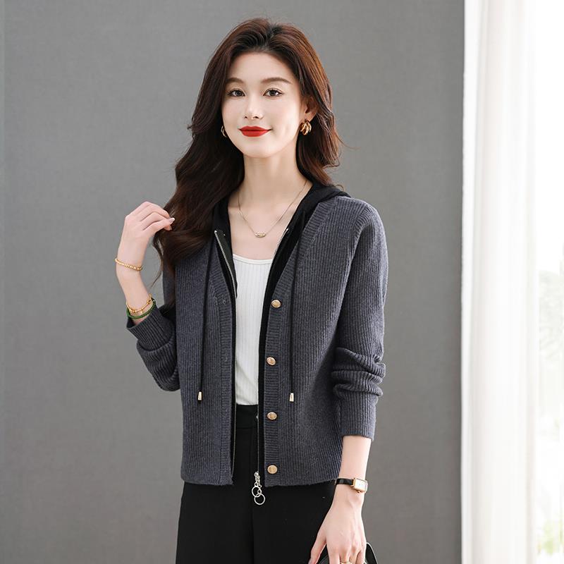 假两件上衣女时尚洋气短款连帽毛衣外套春装2025新款爆款针织开衫