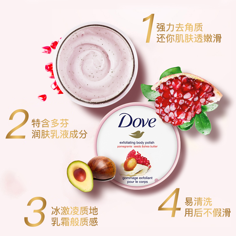 多芬磨砂膏美白去黑色素果酸身体嫩白全身腋下去黑去鸡皮疙瘩角质