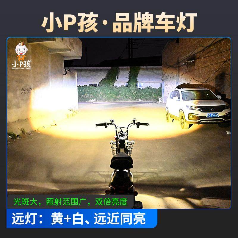 摩托车灯电动车超亮led大灯泡改装12V外置切线强光透镜射灯远近光