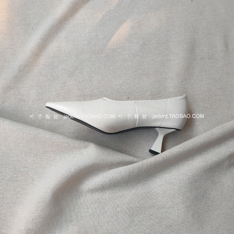 纯原!时髦精搭配白色靴更出众~尖头里外全羊皮短靴猫跟女及裸靴