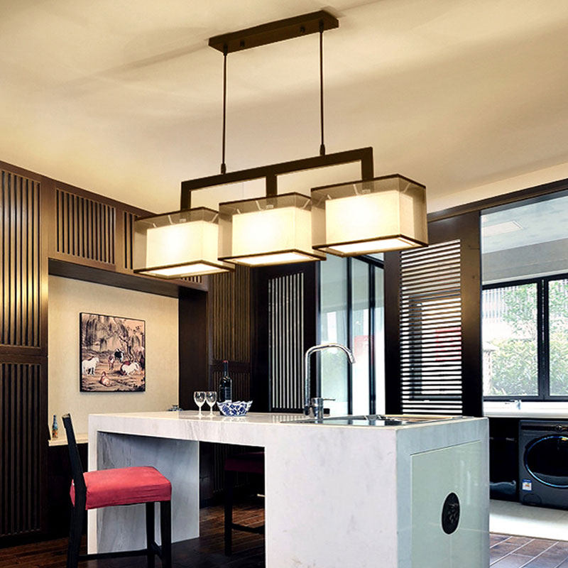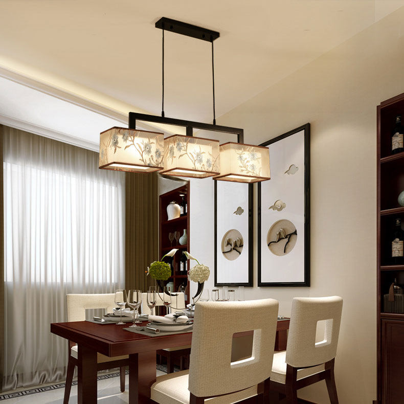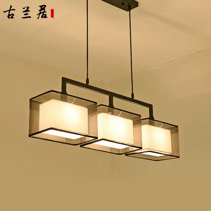 餐厅吊灯长方形三头简约现代大气家用饭厅吧台餐桌书房新中式灯具