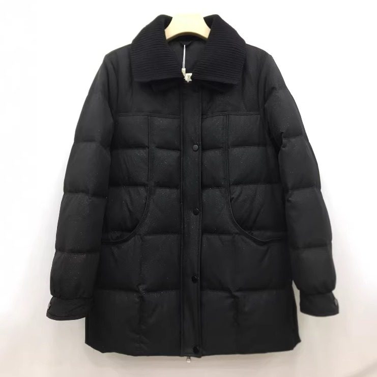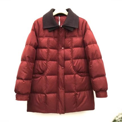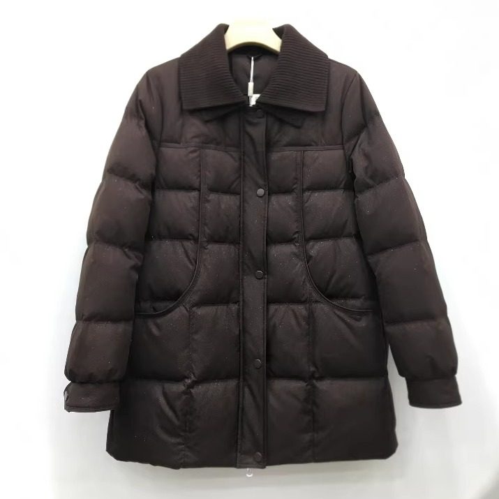 专柜品牌妈妈装白鸭绒羽绒服女中年外套中长款时尚针织翻领羽绒衫