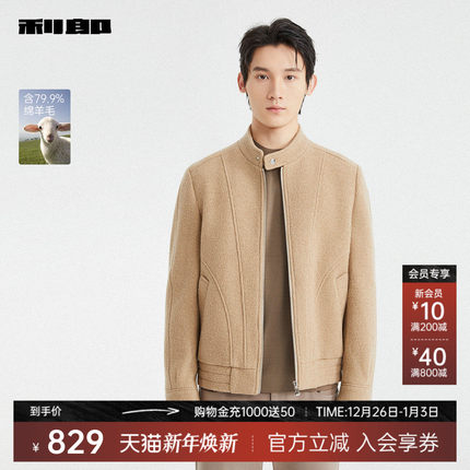 【含绵羊毛】利郎官方毛呢大衣短款男士2025冬季休闲男装夹克外套