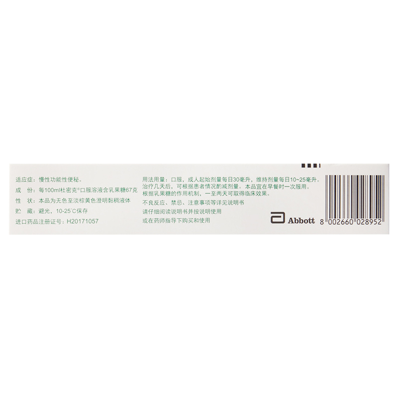 雅培杜密克乳果糖口服溶液6袋慢性功能性便秘小绿条