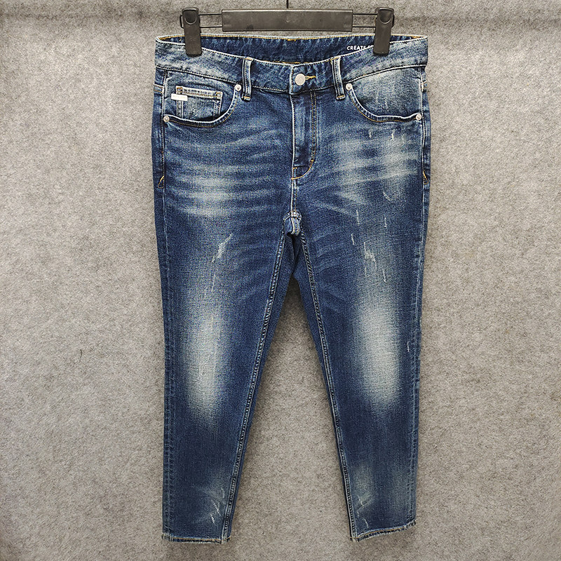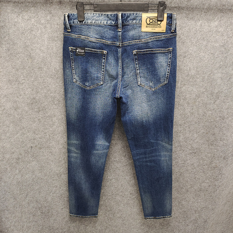 G家男装牛仔裤弹力磨毛破洞时尚休闲水洗修身小脚长裤潮2024春款