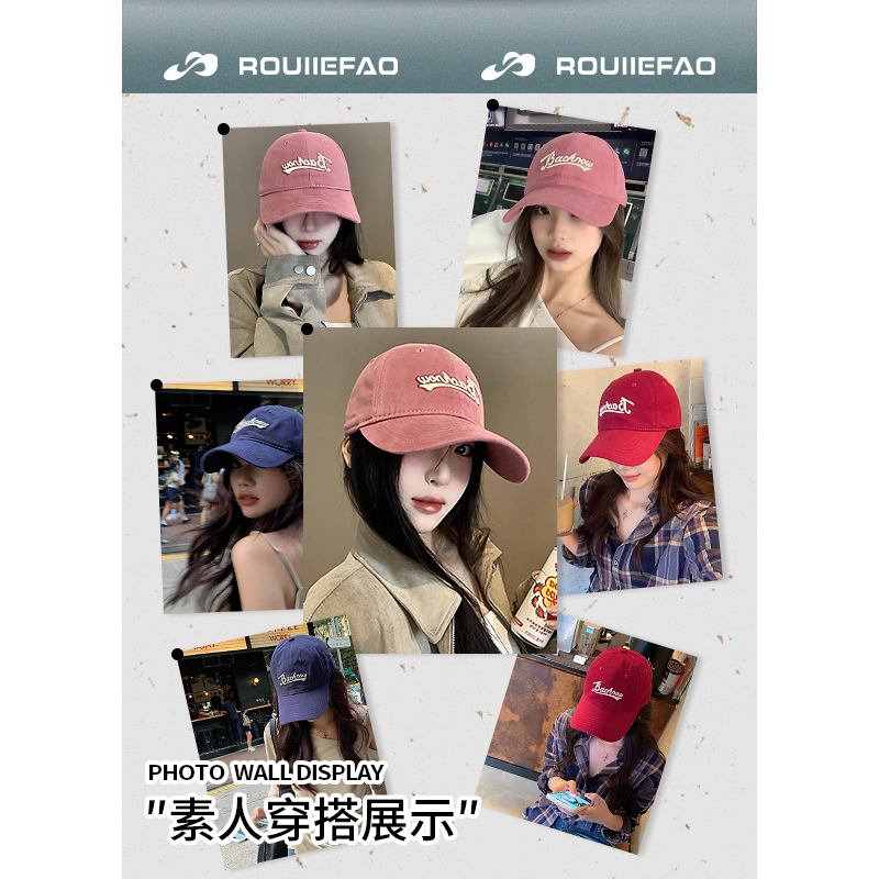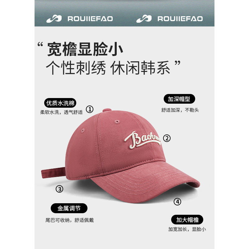 韩版树莓粉字母棒球帽子女大头围深顶宽帽檐显脸小鸭舌帽遮阳帽男